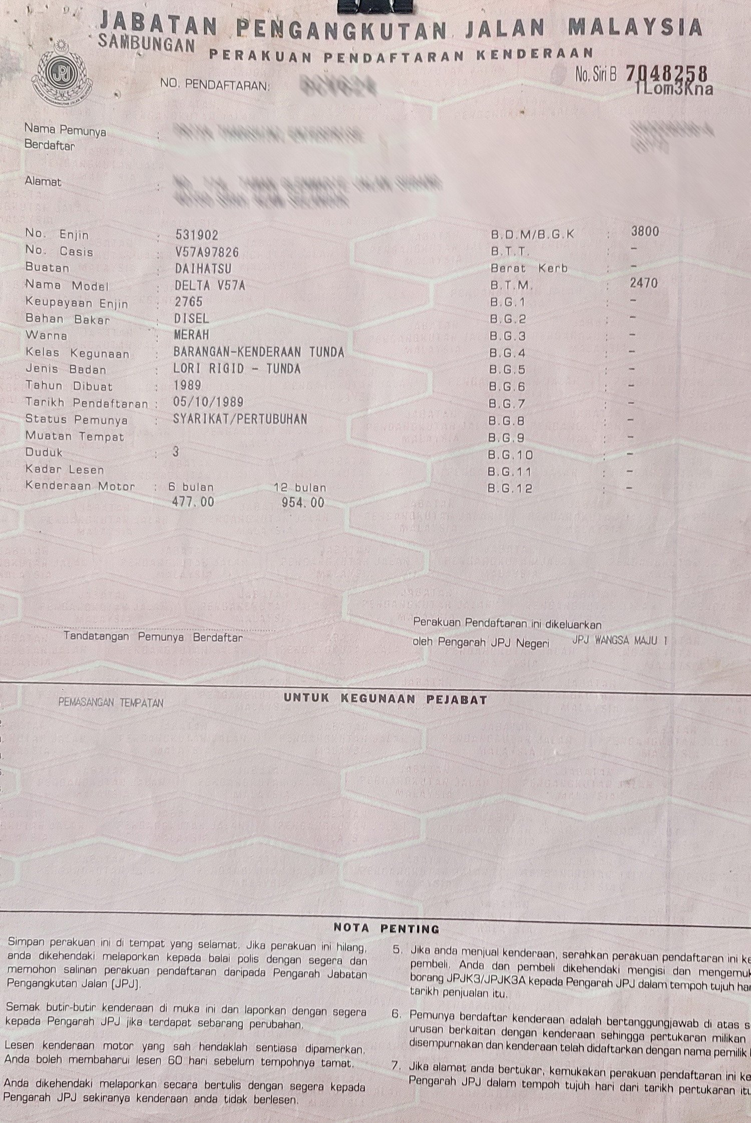 2. Selling Price for vehicle only, not included insurance, roadtax and handling etc.