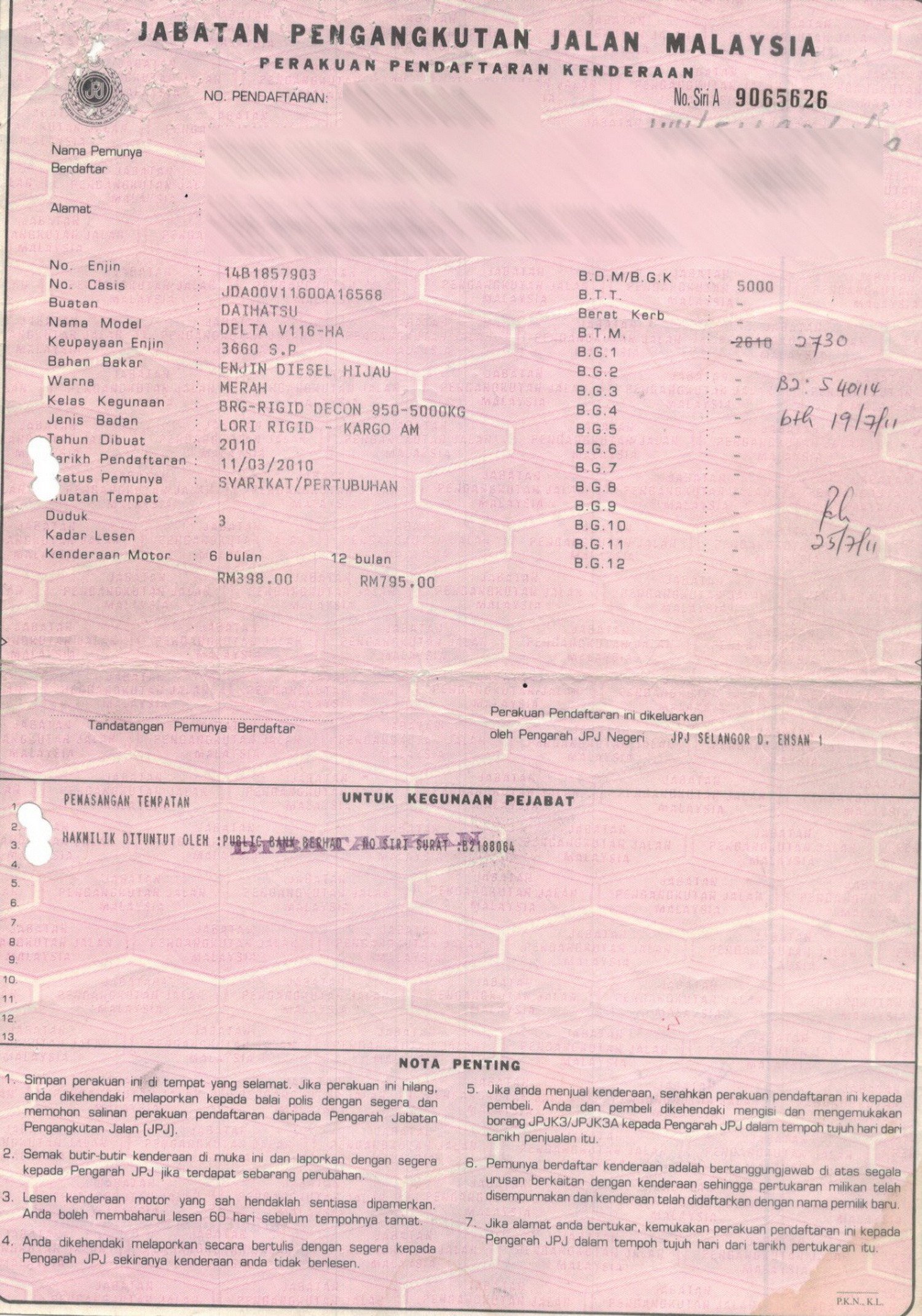 2. Selling Price for vehicle only, not included insurance, roadtax and handling etc.