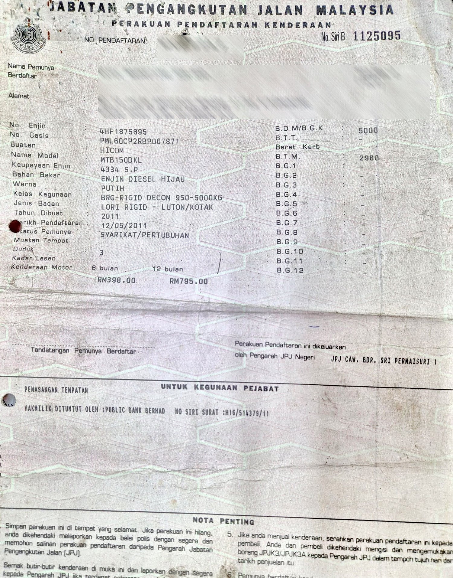 2. Selling Price for vehicle only, not included insurance, roadtax and handling etc.