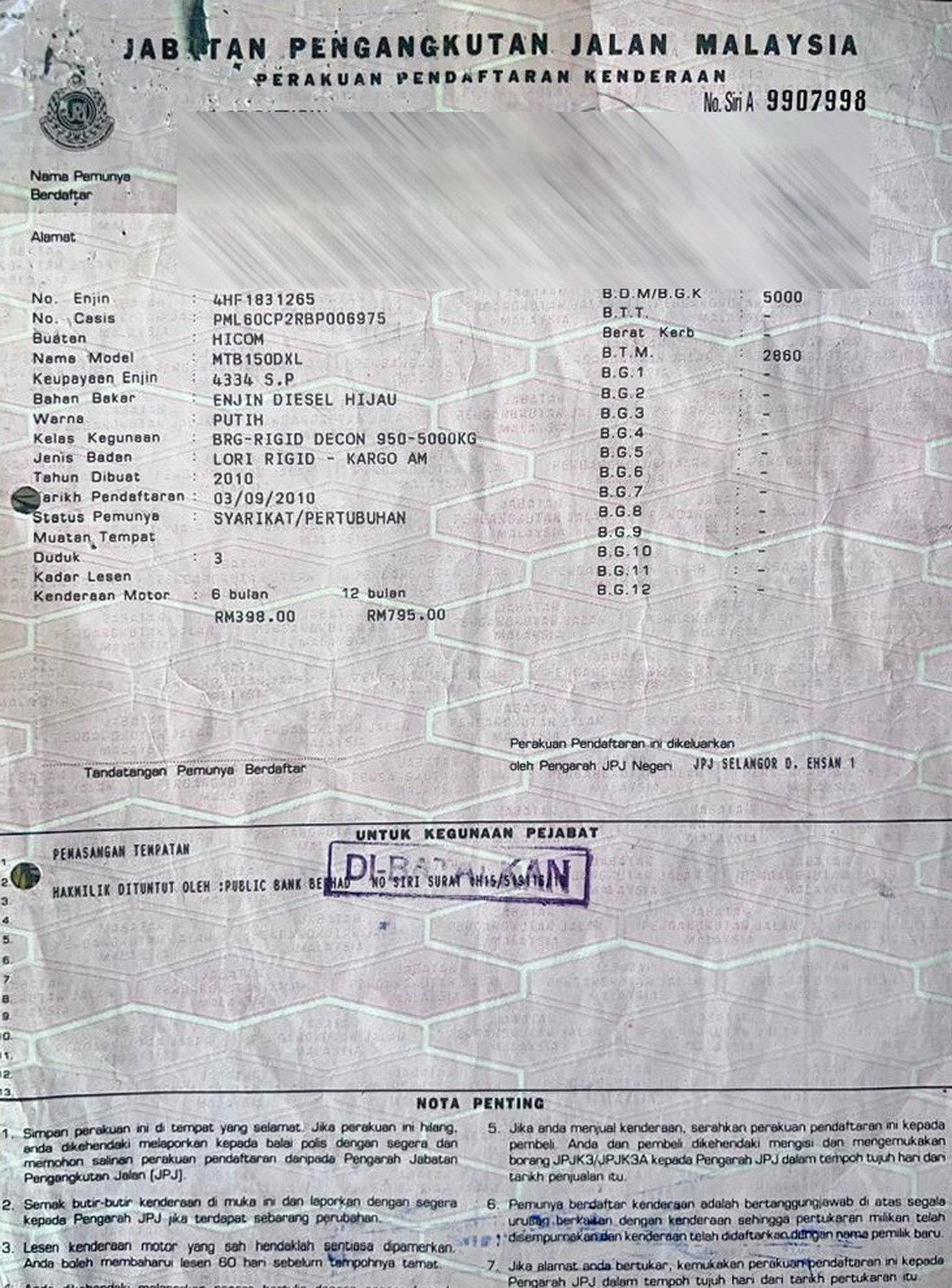 2. Selling Price for vehicle only, not included insurance, roadtax and handling etc.