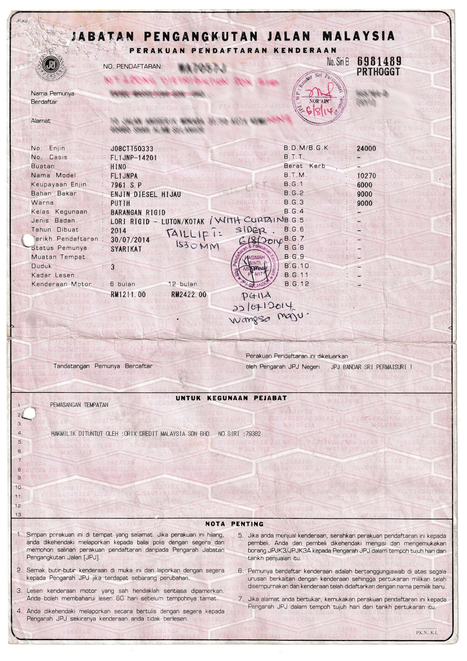 2. Selling Price for vehicle only, not included insurance, roadtax and handling etc.