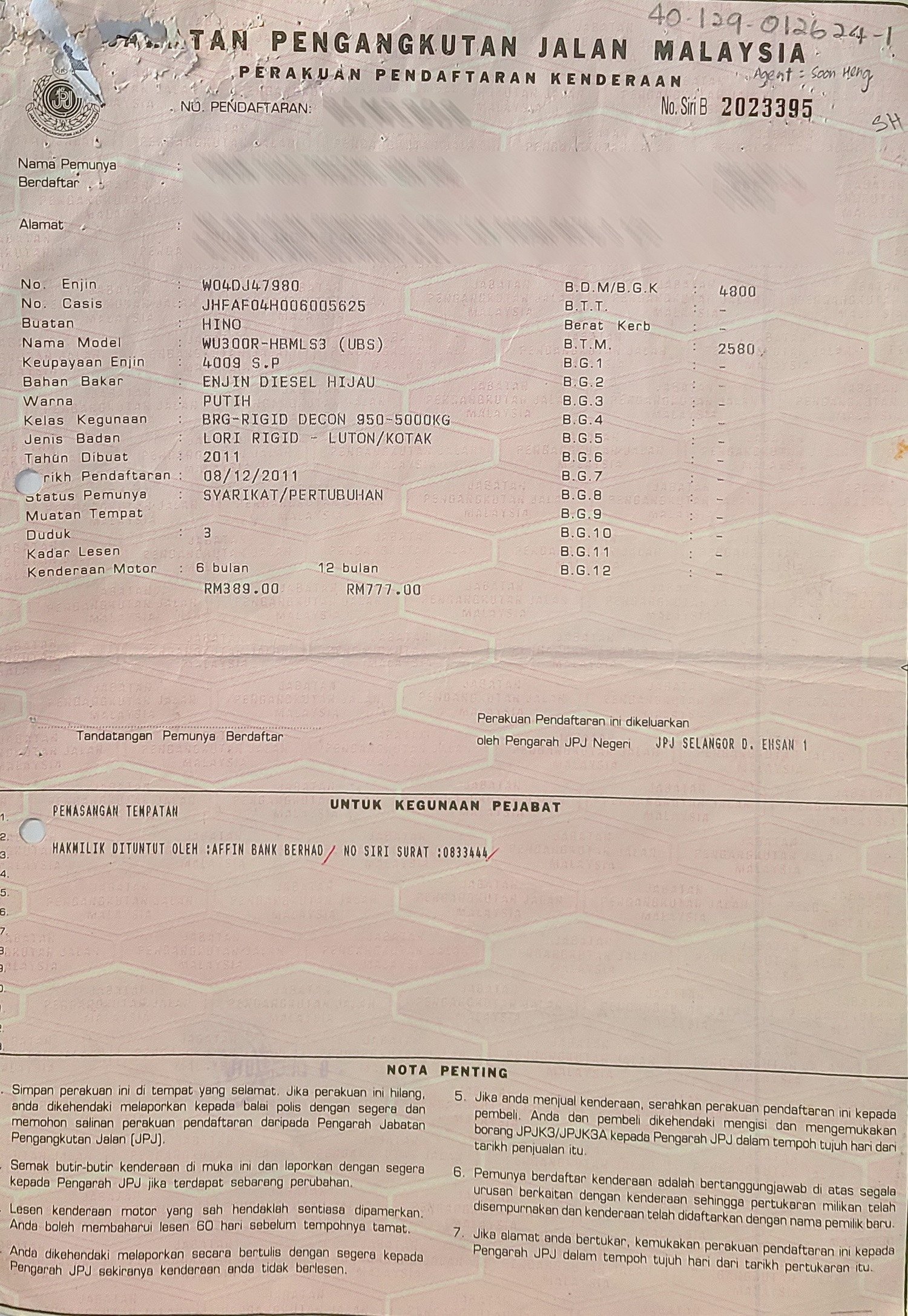 2. Selling Price for vehicle only, not included insurance, roadtax and handling etc.