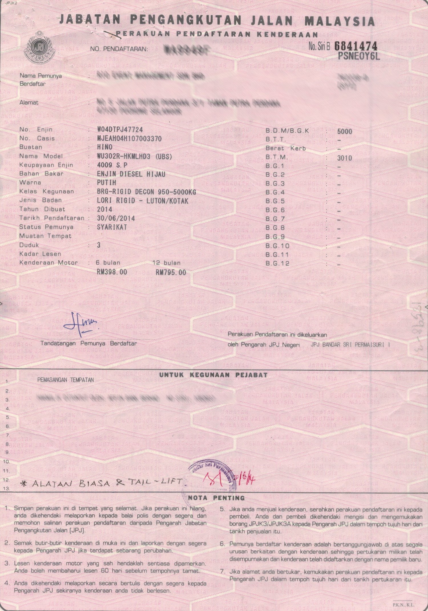 2. Selling Price for vehicle only, not included insurance, roadtax and handling etc.