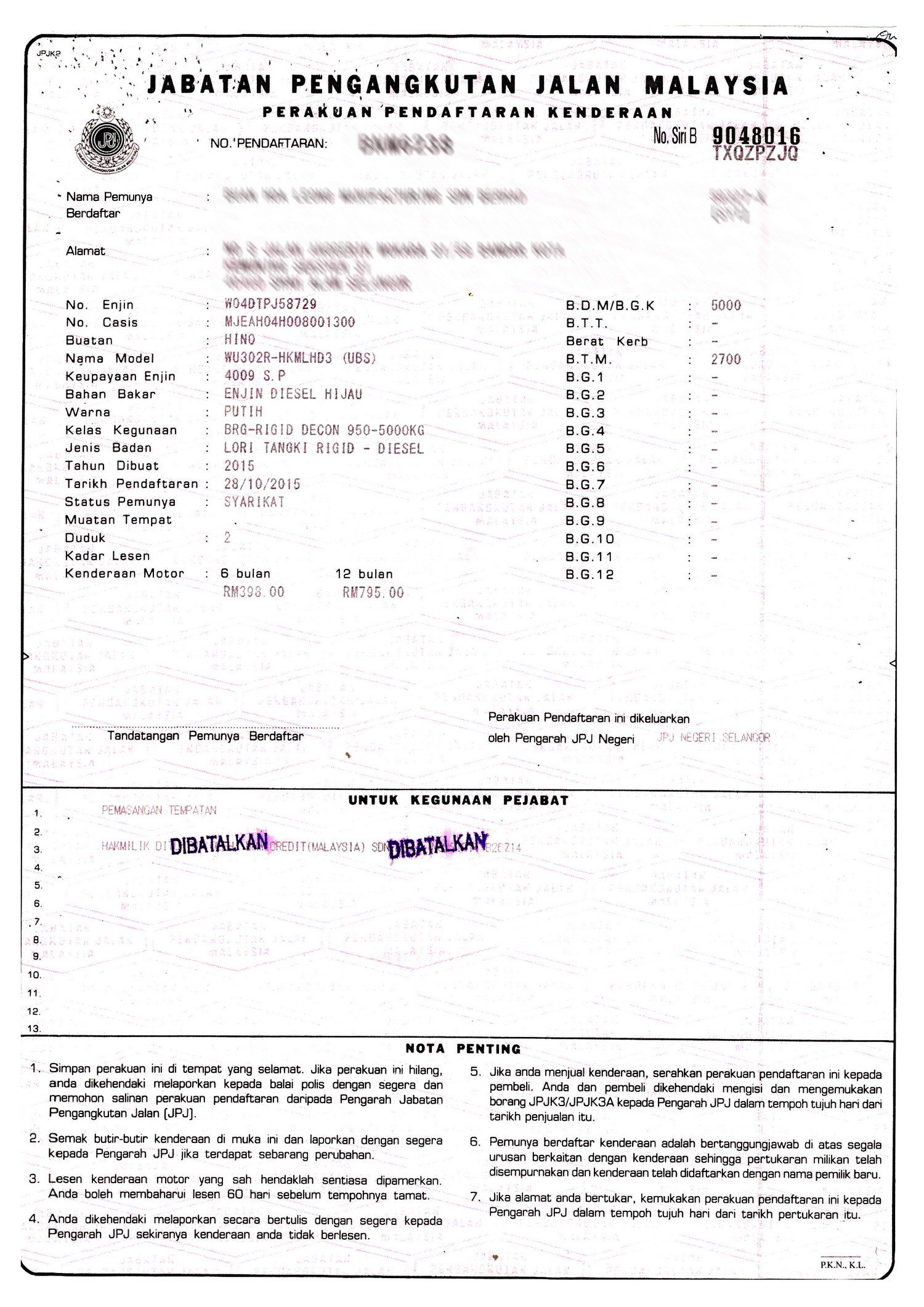 2. Selling Price for vehicle only, not included insurance, roadtax and handling etc.