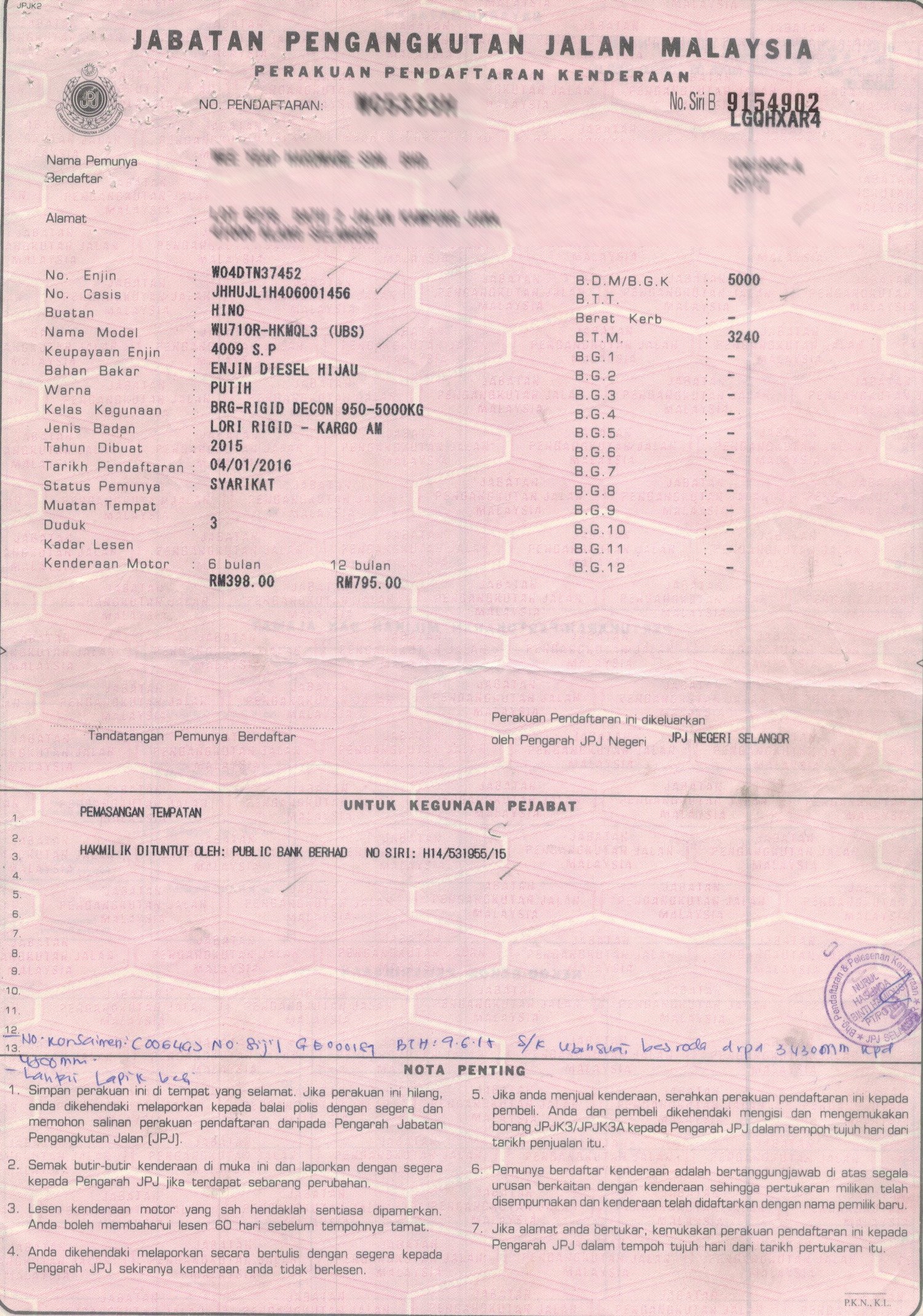 2. Selling Price for vehicle only, not included insurance, roadtax and handling etc.