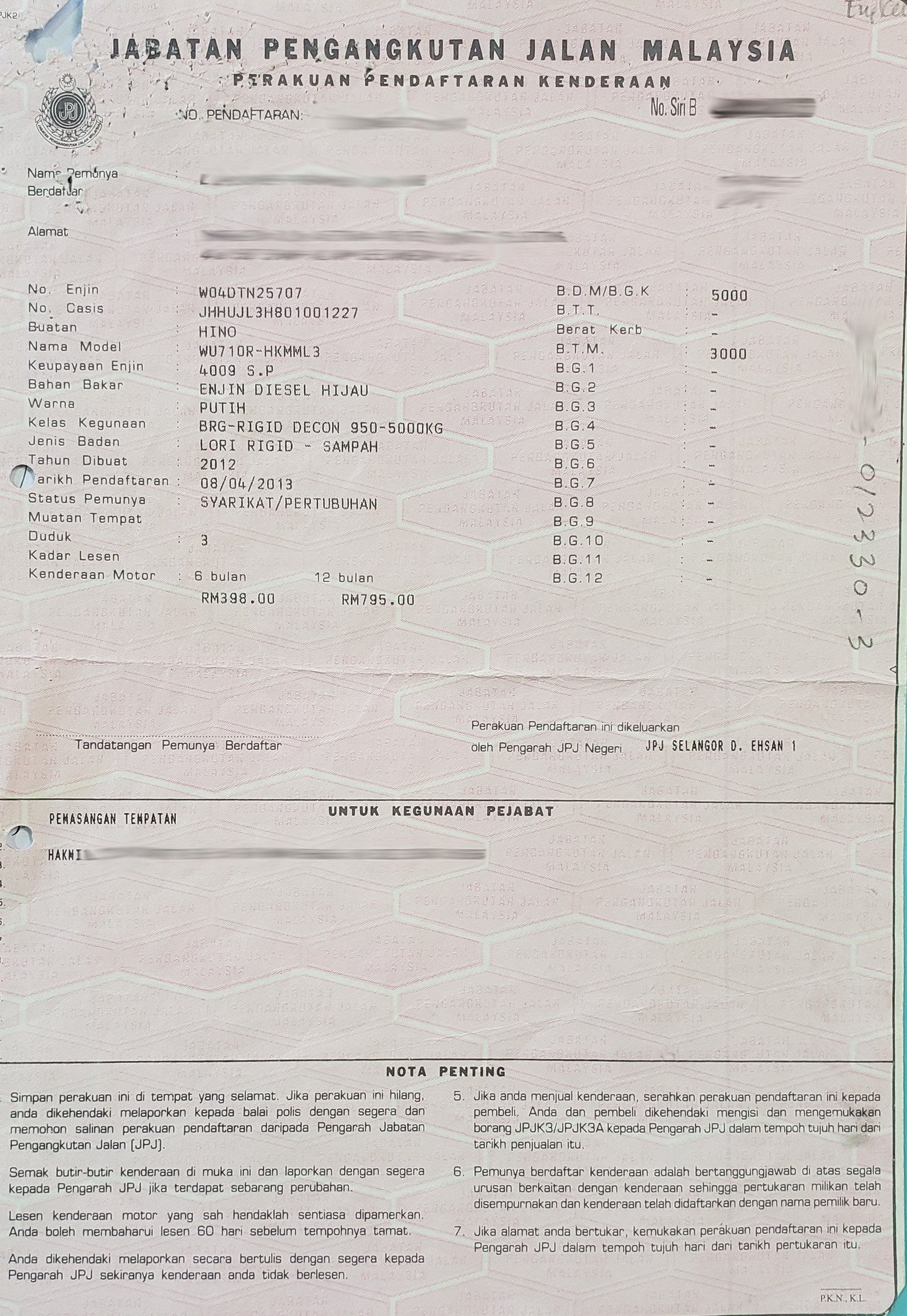 2. Selling Price for vehicle only, not included insurance, roadtax and handling etc.