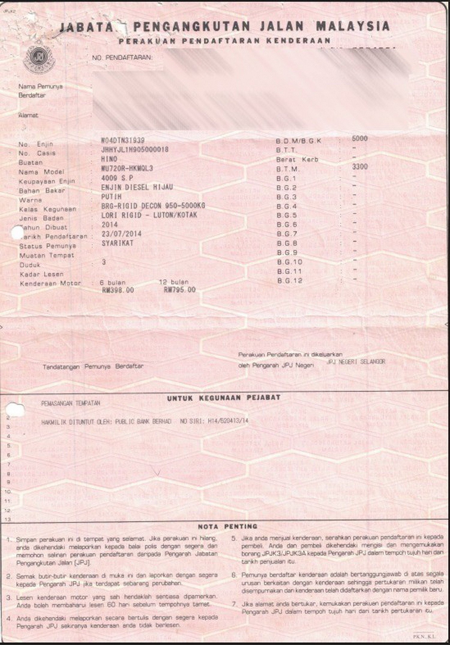 2. Selling Price for vehicle only, not included insurance, roadtax and handling etc.