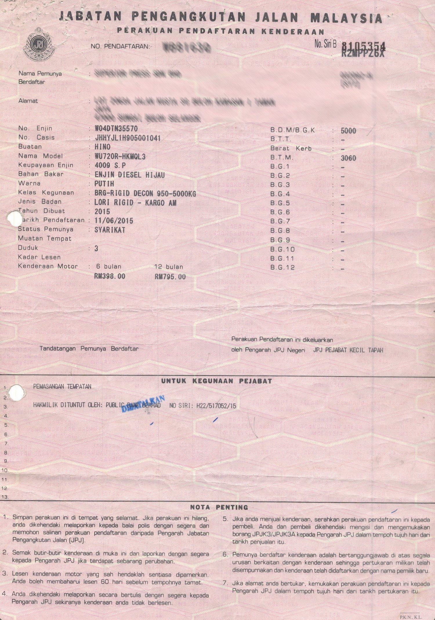 2. Selling Price for vehicle only, not included insurance, roadtax and handling etc.
