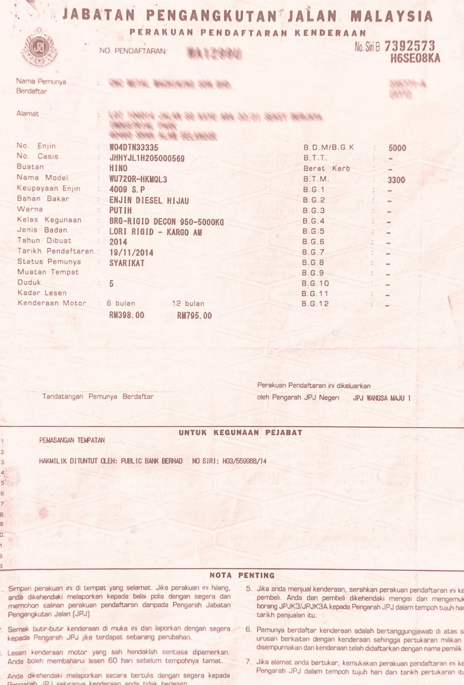 2. Selling Price for vehicle only, not included insurance, roadtax and handling etc.