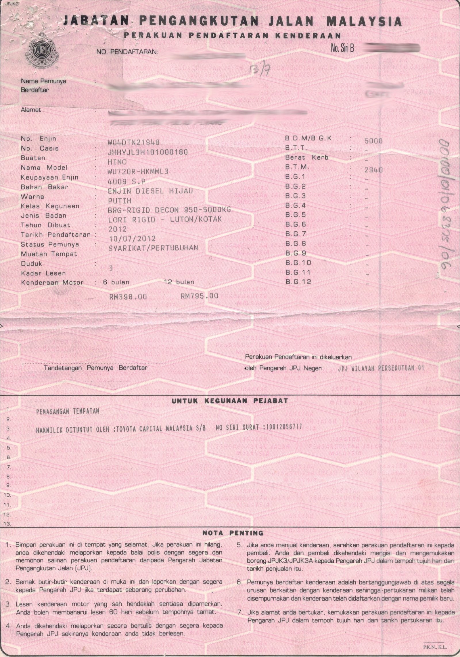 2. Selling Price for vehicle only, not included insurance, roadtax and handling etc.
