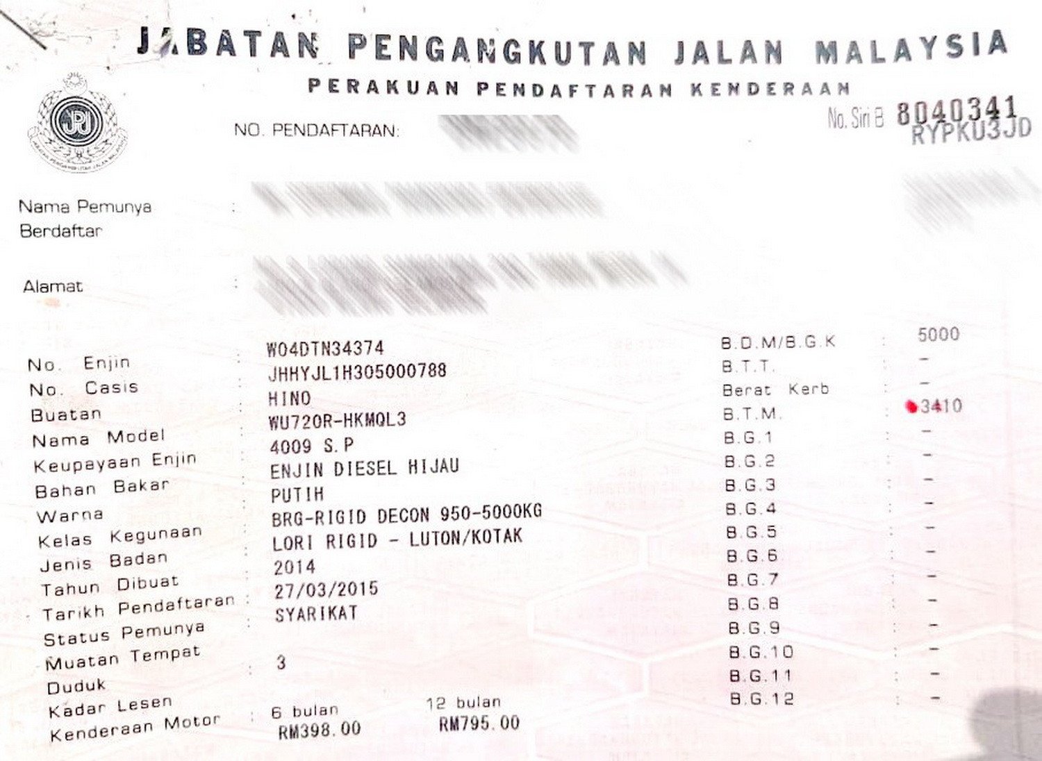 2. Selling Price for vehicle only, not included insurance, roadtax and handling etc.