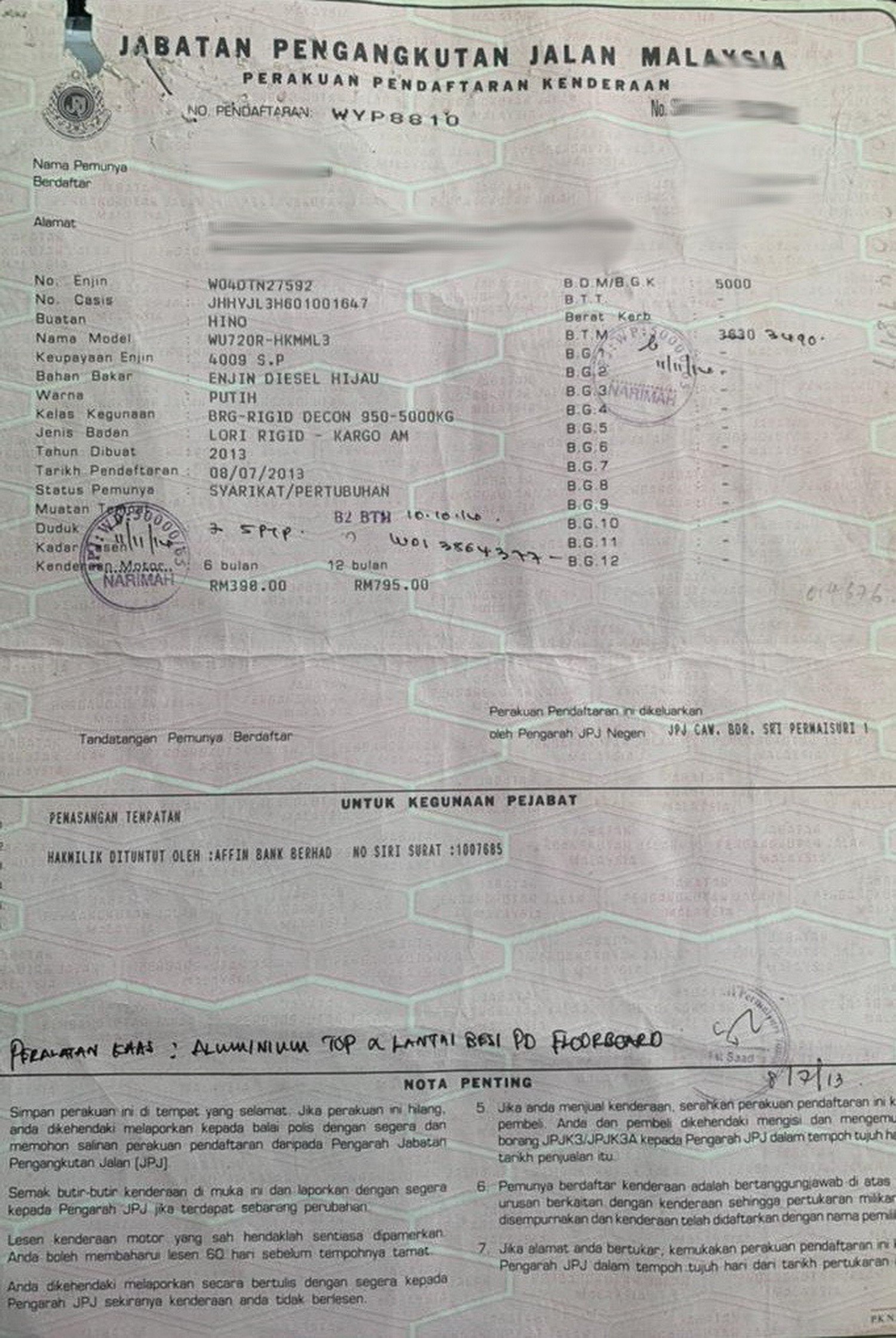 2. Selling Price for vehicle only, not included insurance, roadtax and handling etc.