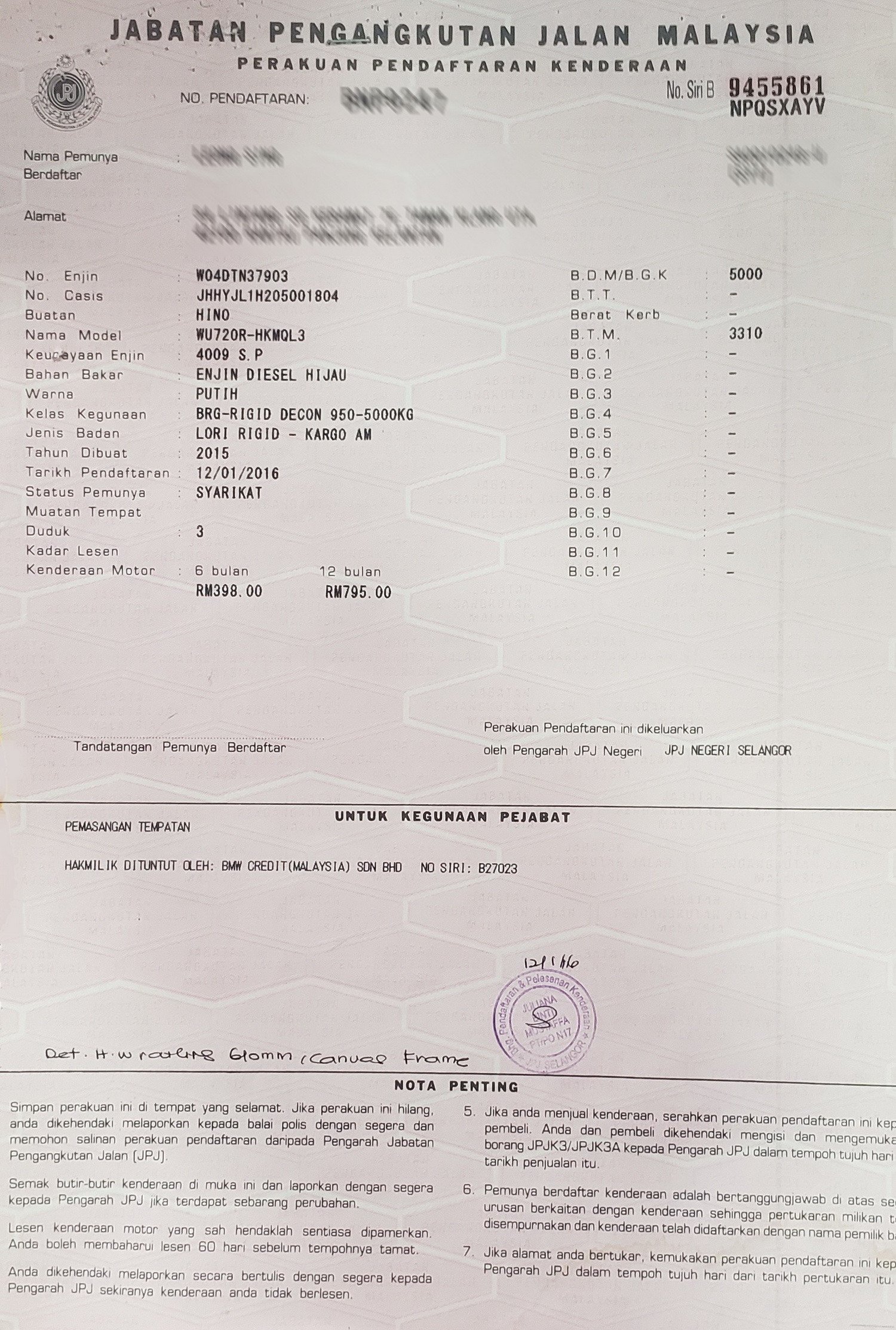2. Selling Price for vehicle only, not included insurance, roadtax and handling etc.