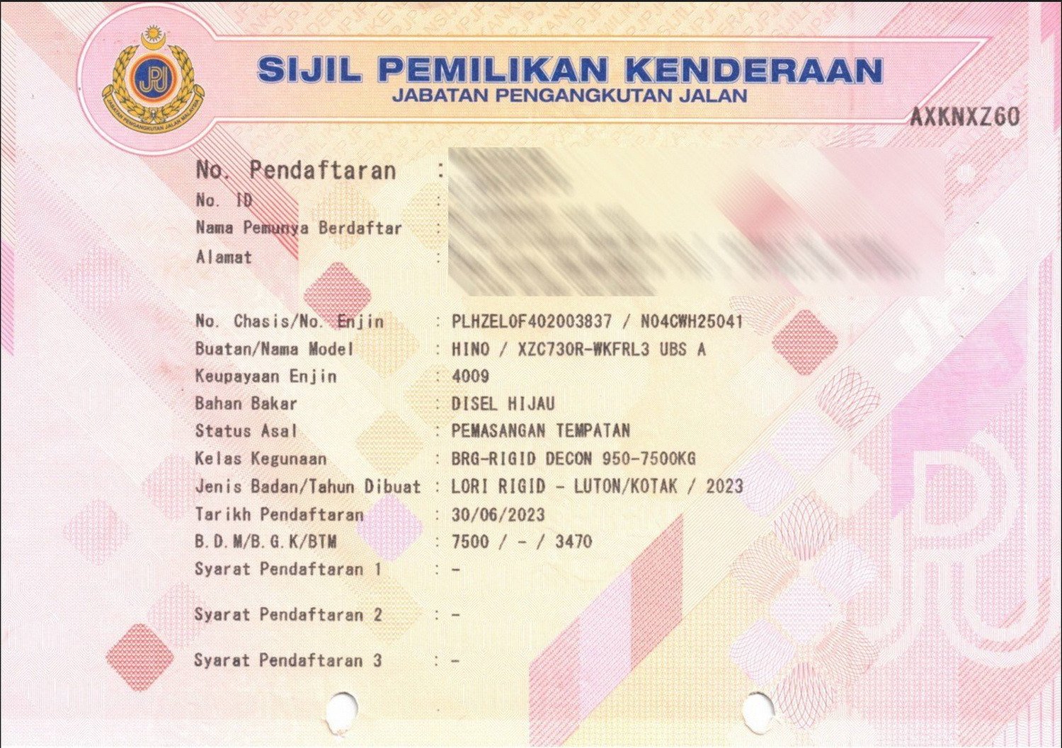 2. Selling Price for vehicle only, not included insurance, roadtax and handling etc.