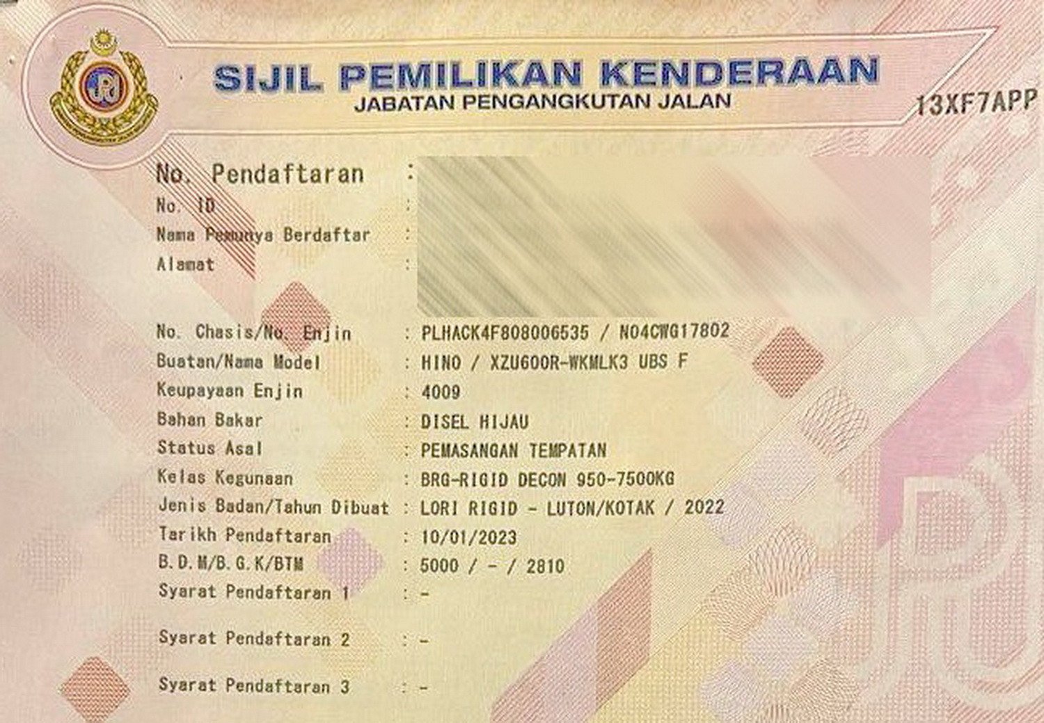 HINO XZU600 BOX 13FT UBS CORRUGATED 5000KG LORRY #7472VJX- KAWAN