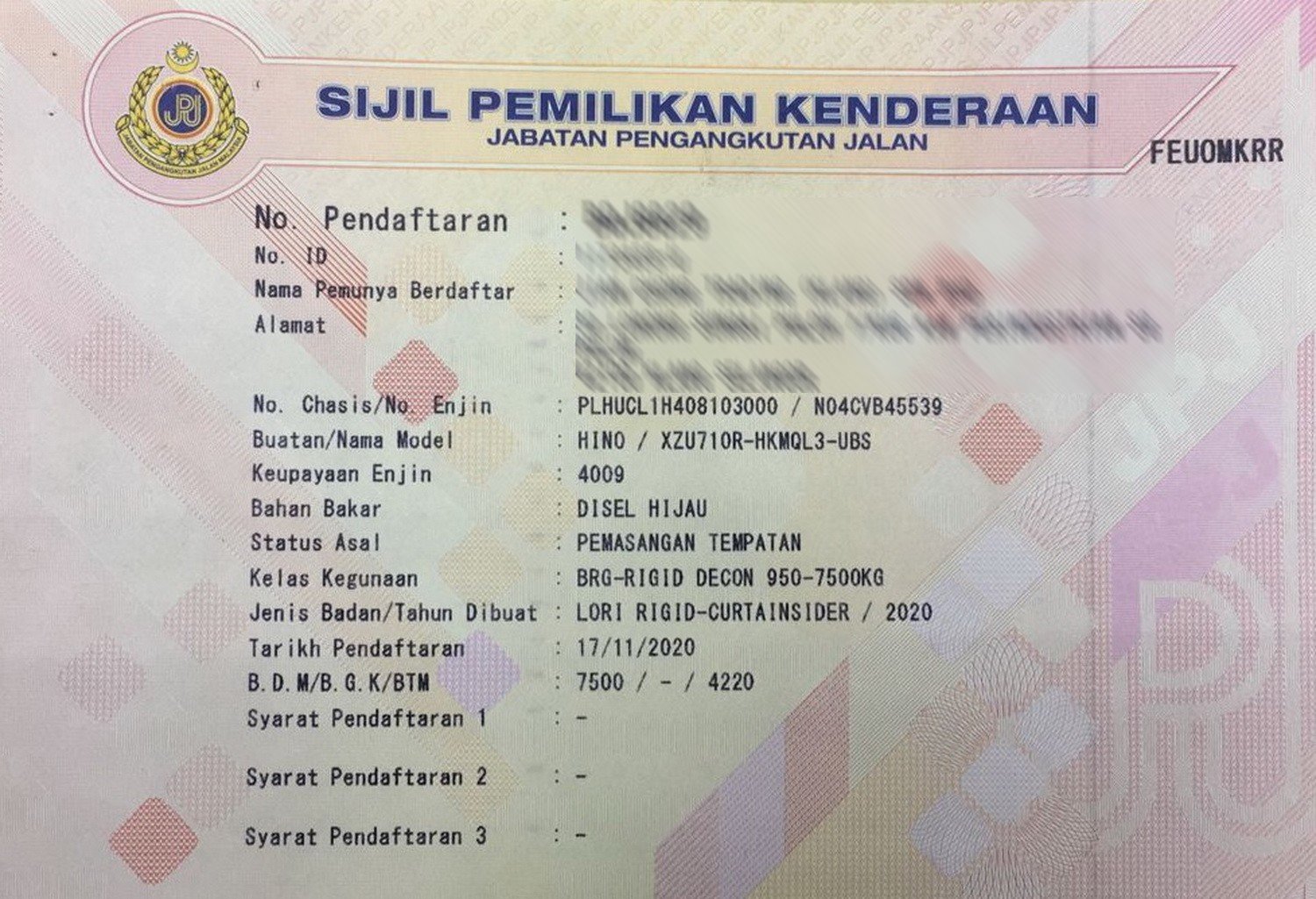 Jenis Badan: RIGID CURTAIN SIDER