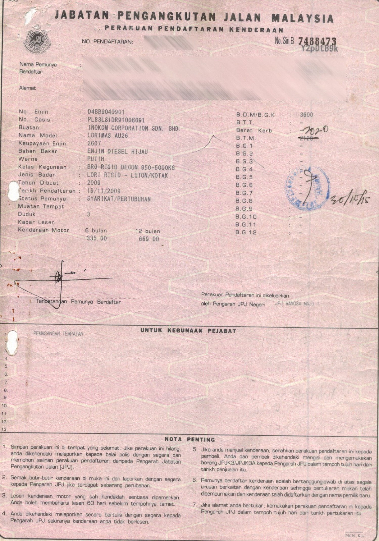 2. Selling Price for vehicle only, not included insurance, roadtax and handling etc.