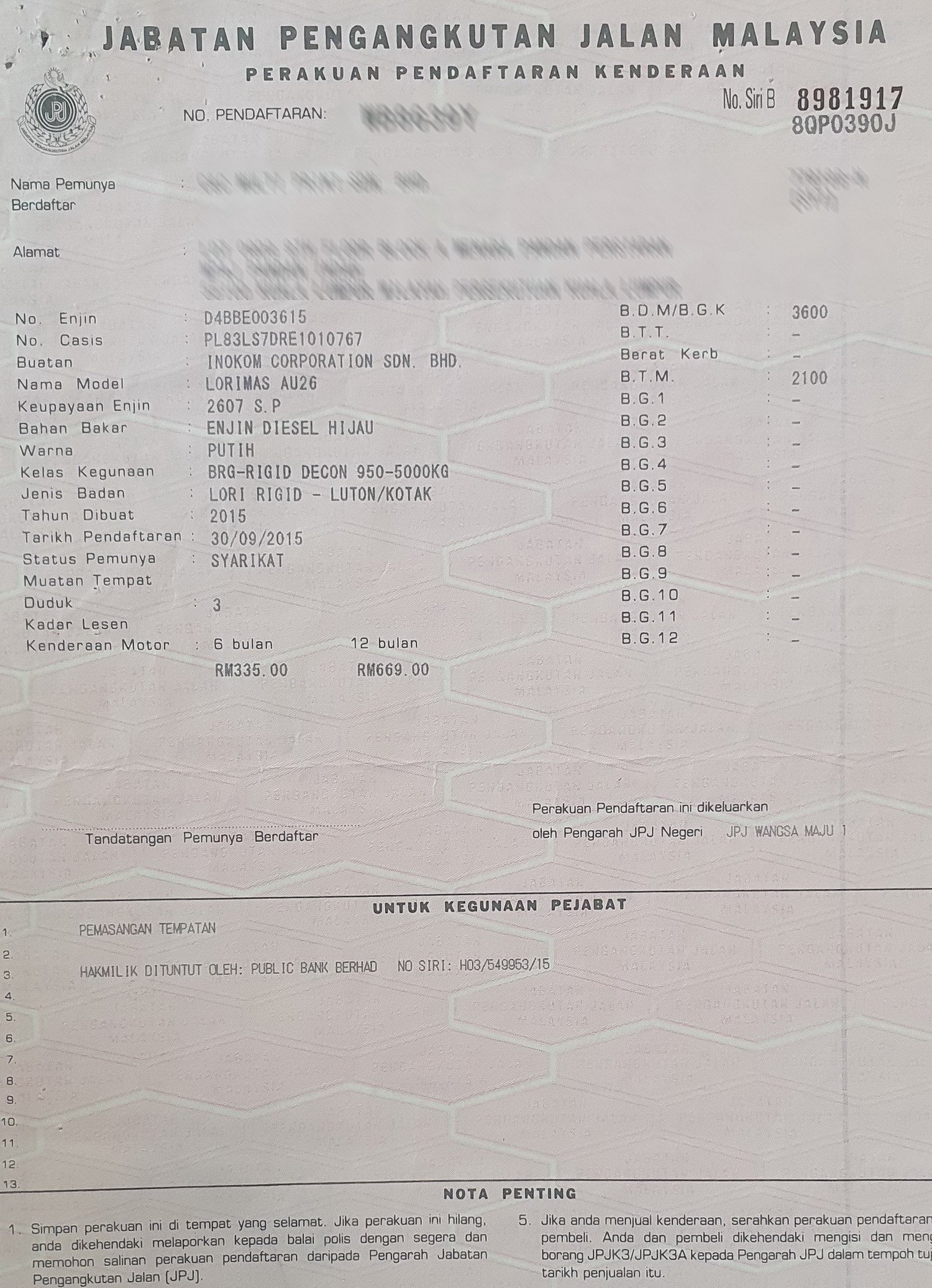2. Selling Price for vehicle only, not included insurance, roadtax and handling etc.