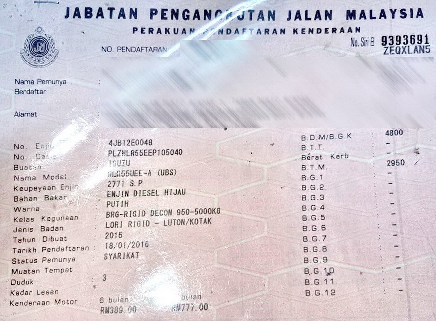 2. Selling Price for vehicle only, not included insurance, roadtax and handling etc.
