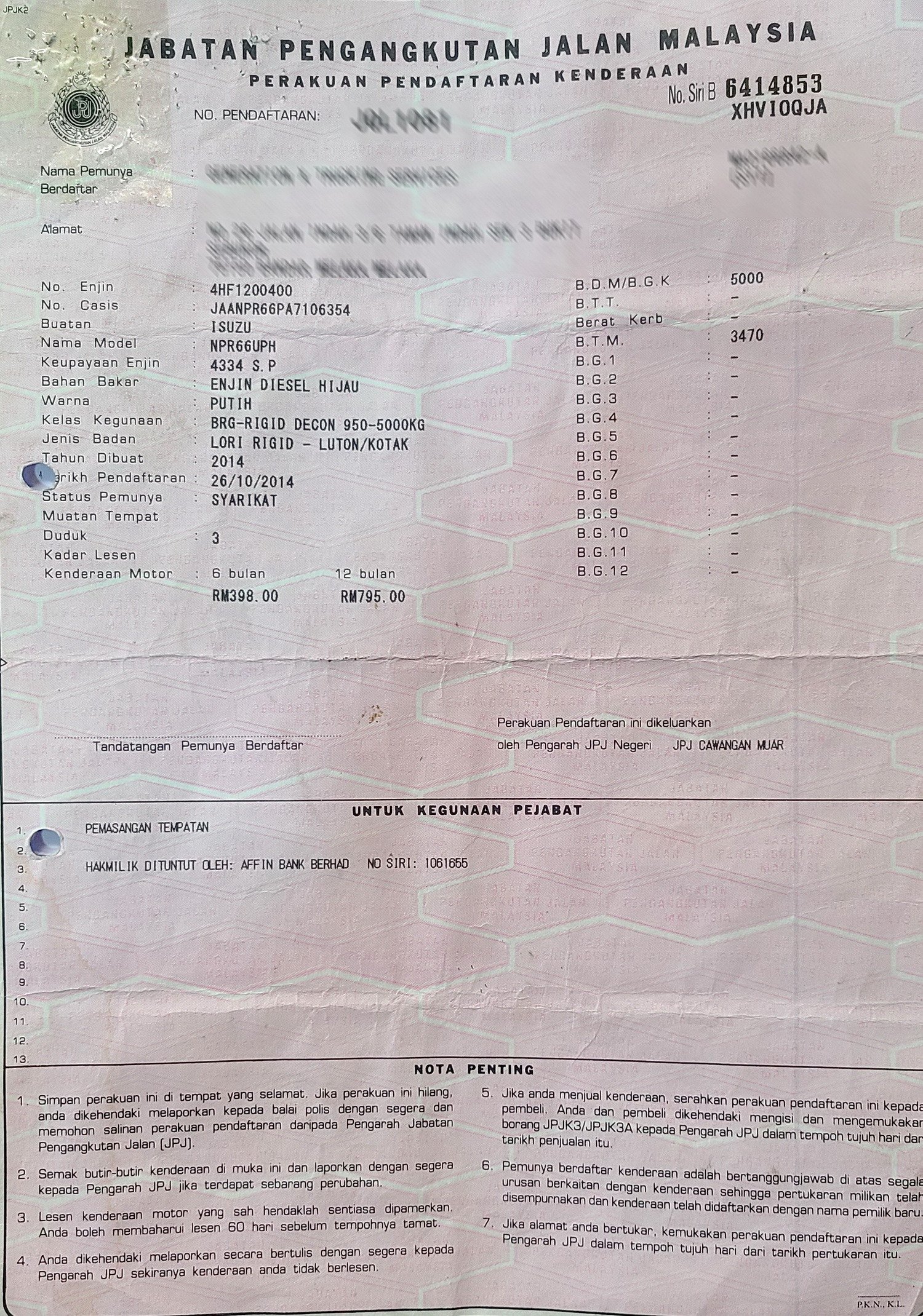 2. Selling Price for vehicle only, not included insurance, roadtax and handling etc.
