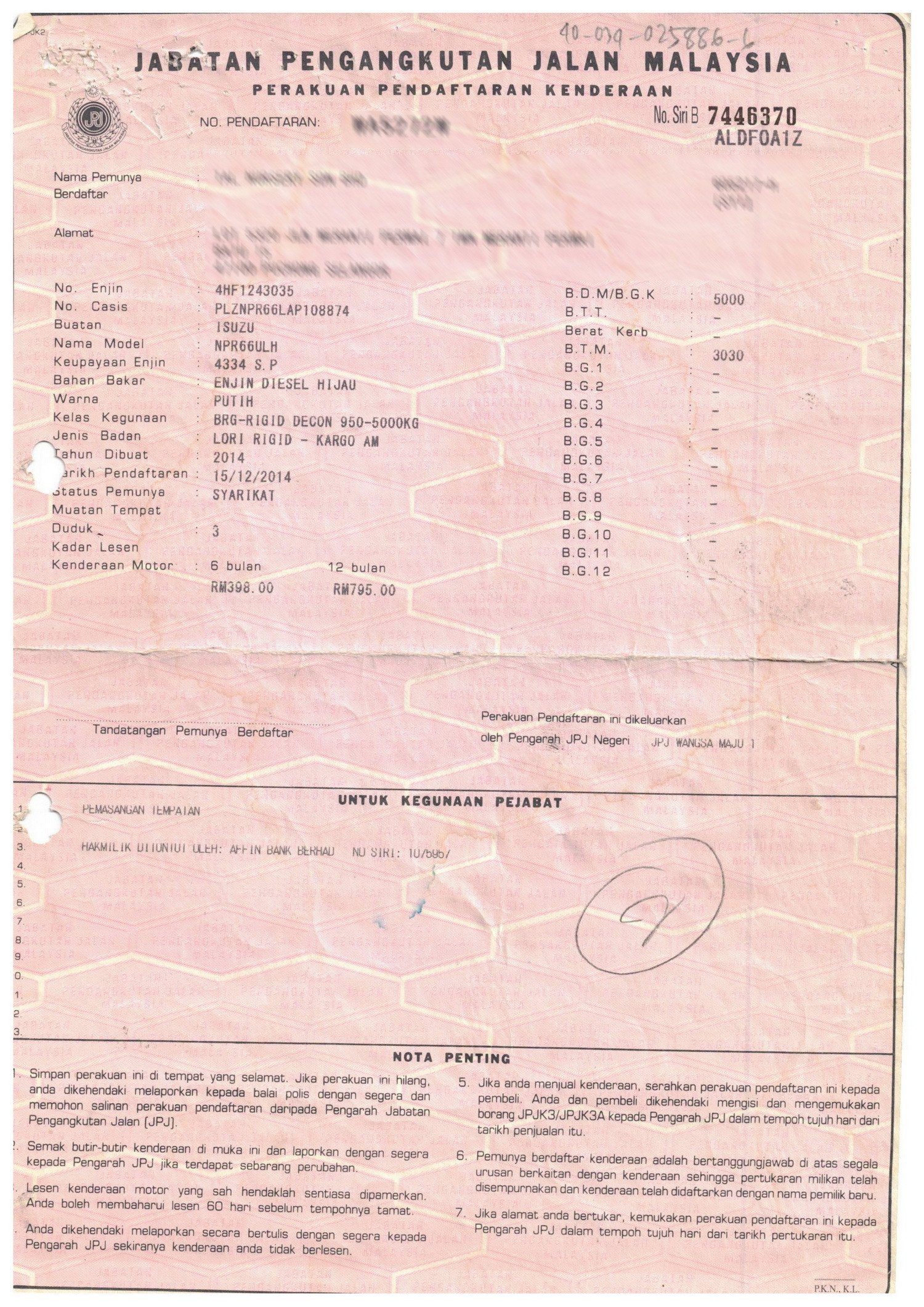 2. Selling Price for vehicle only, not included insurance, roadtax and handling etc.