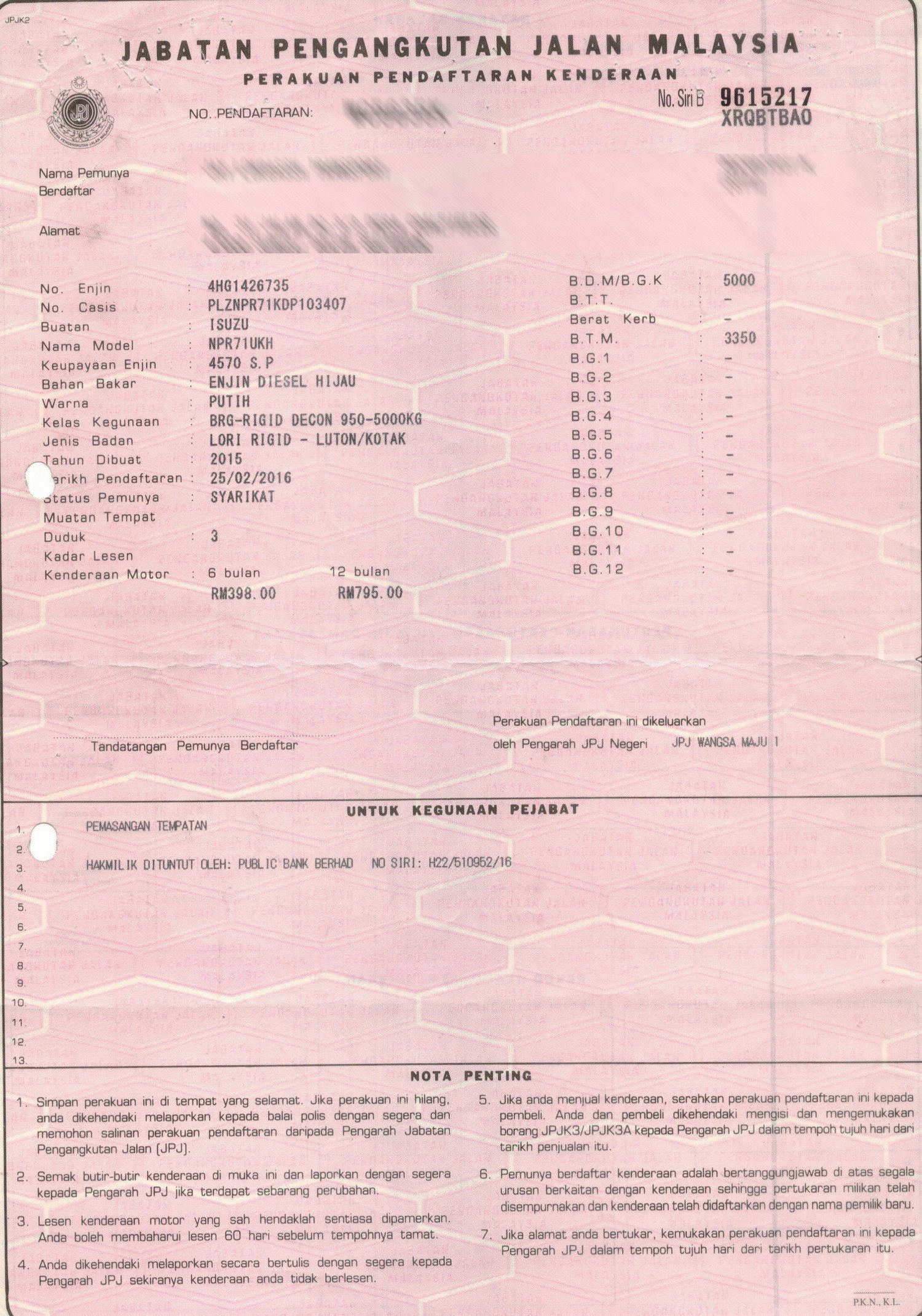 2. Selling Price for vehicle only, not included insurance, roadtax and handling etc.