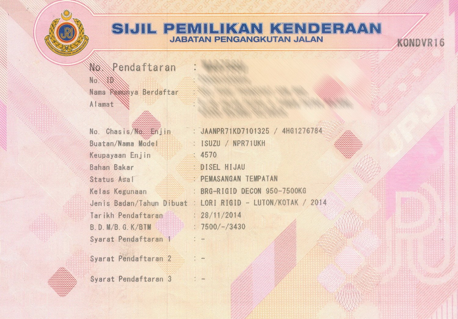 2. Selling Price for vehicle only, not included insurance, roadtax and handling etc.