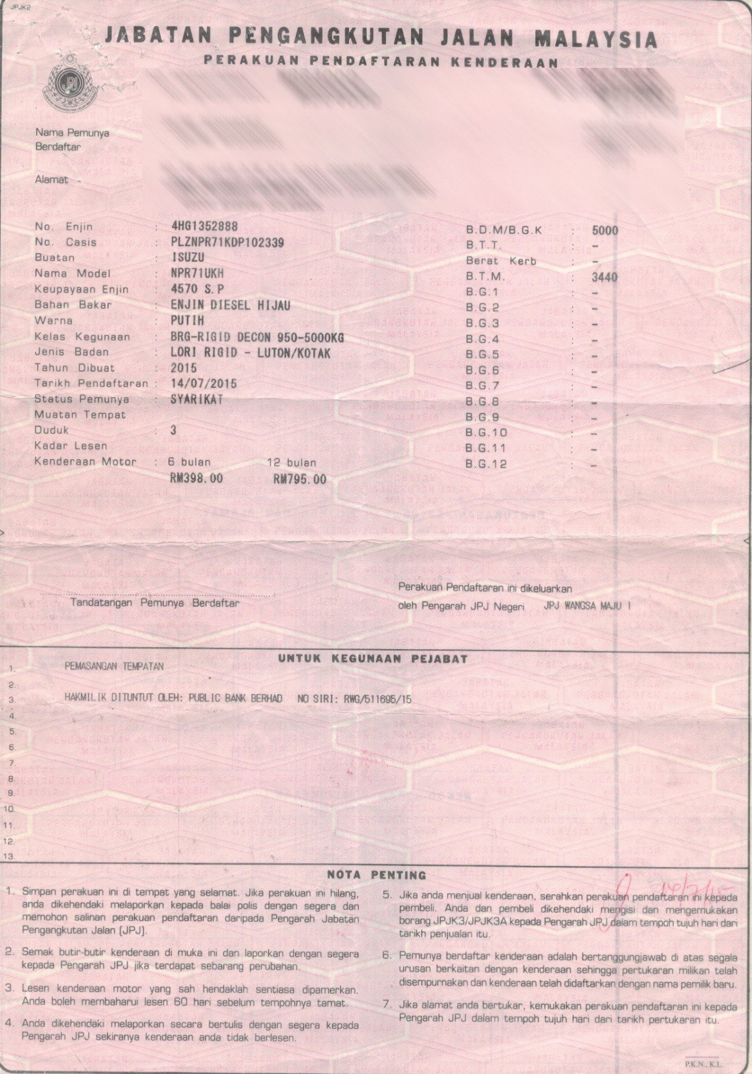 2. Selling Price for vehicle only, not included insurance, roadtax and handling etc.