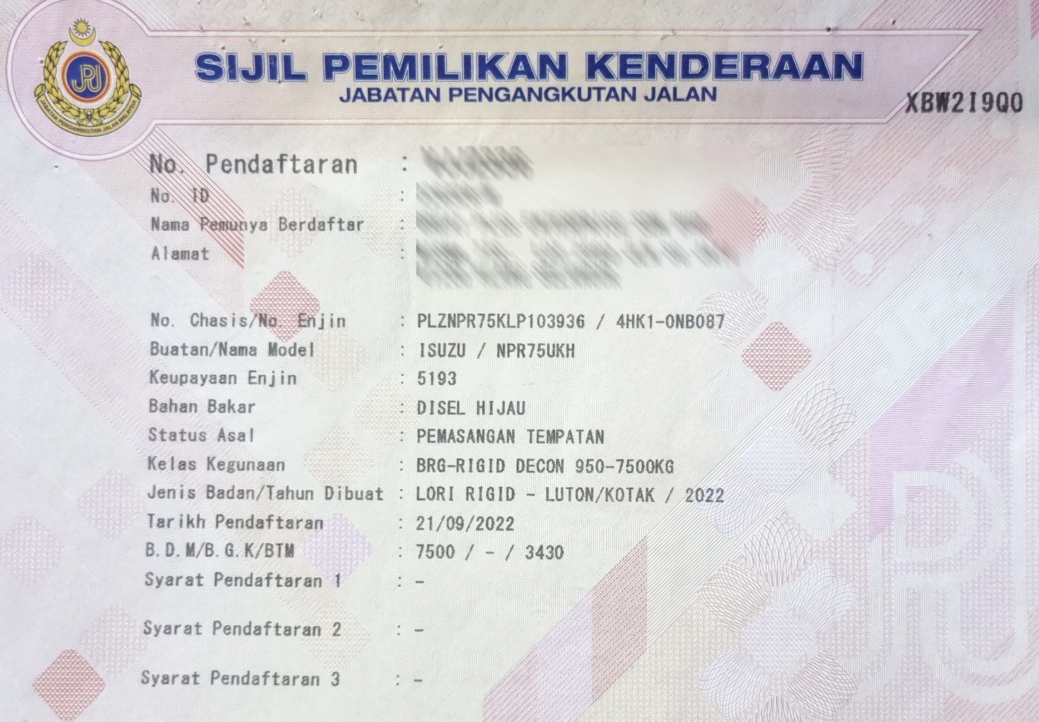 2. Selling Price for vehicle only, not included insurance, roadtax and handling etc.