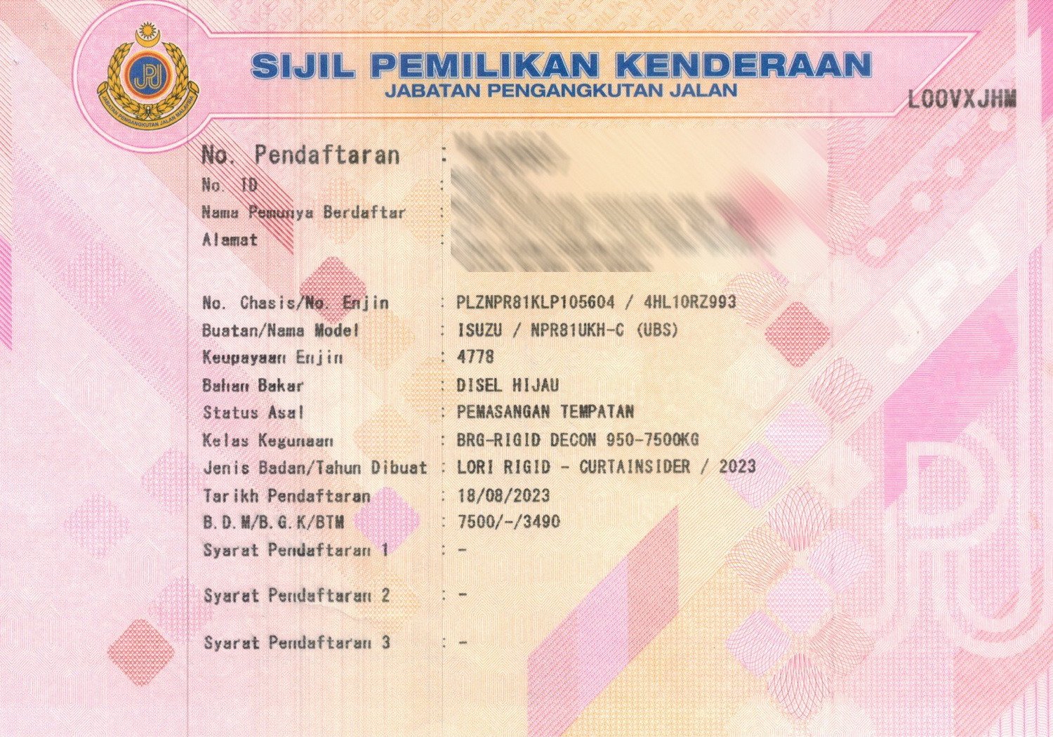 2. Selling Price for vehicle only, not included insurance, roadtax and handling etc.