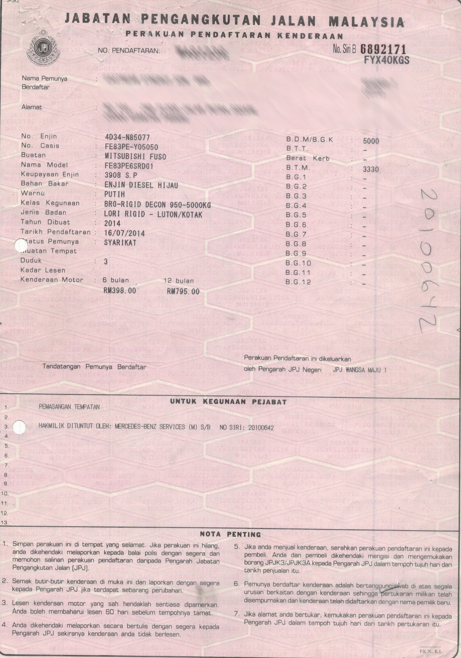 2. Selling Price for vehicle only, not included insurance, roadtax and handling etc.