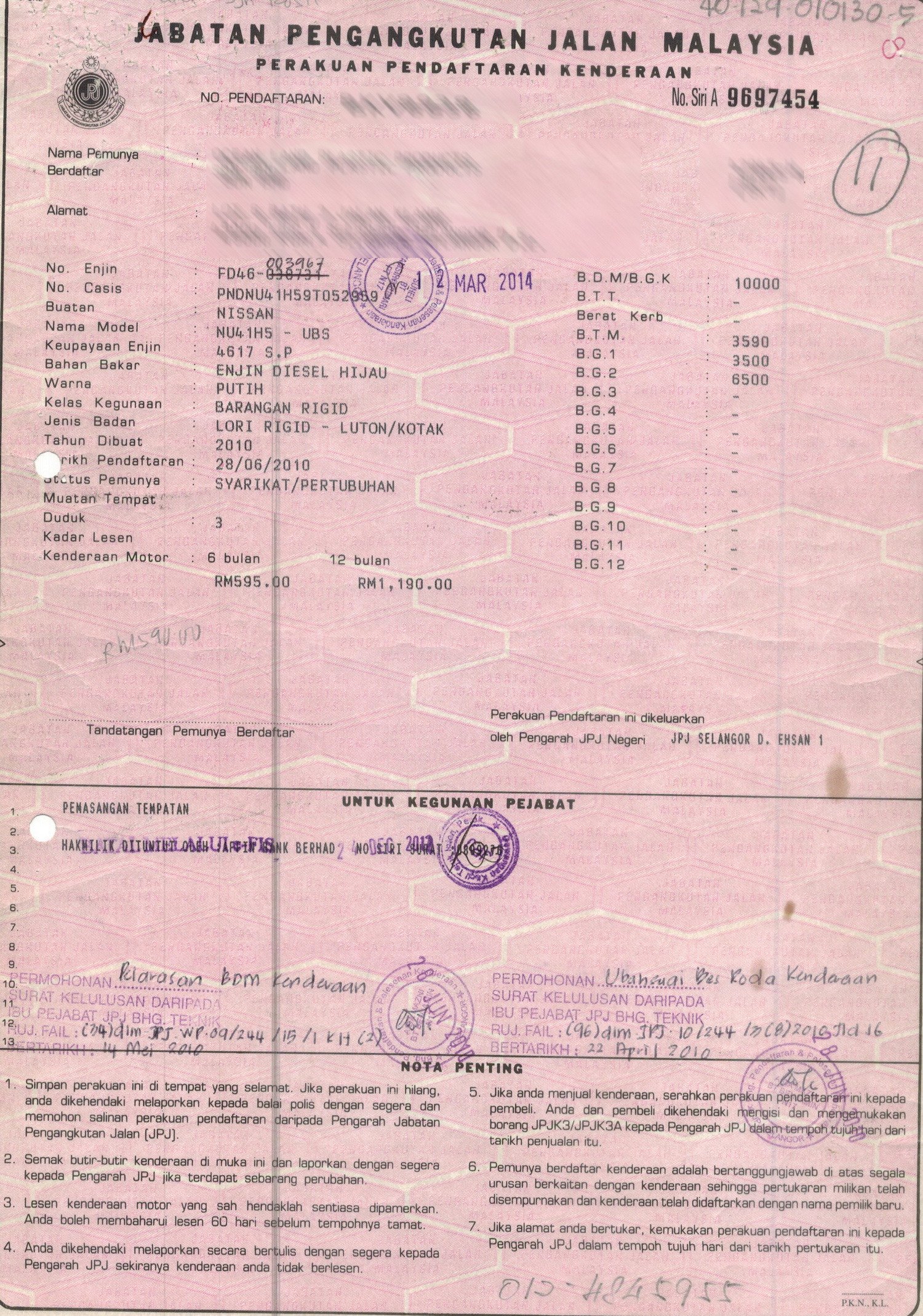 2. Selling Price for vehicle only, not included insurance, roadtax and handling etc.