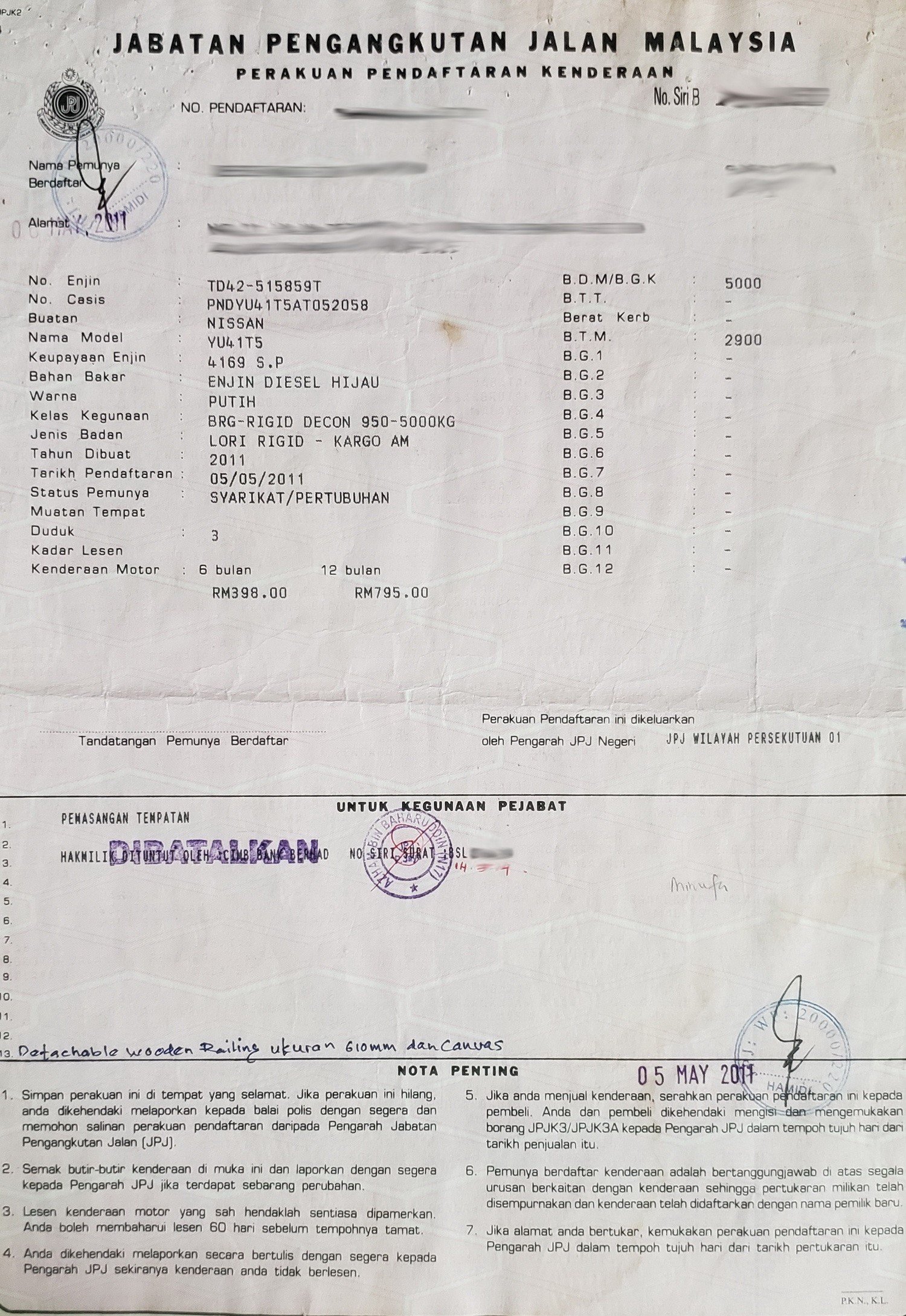 2. Selling Price for vehicle only, not included insurance, roadtax and handling etc.