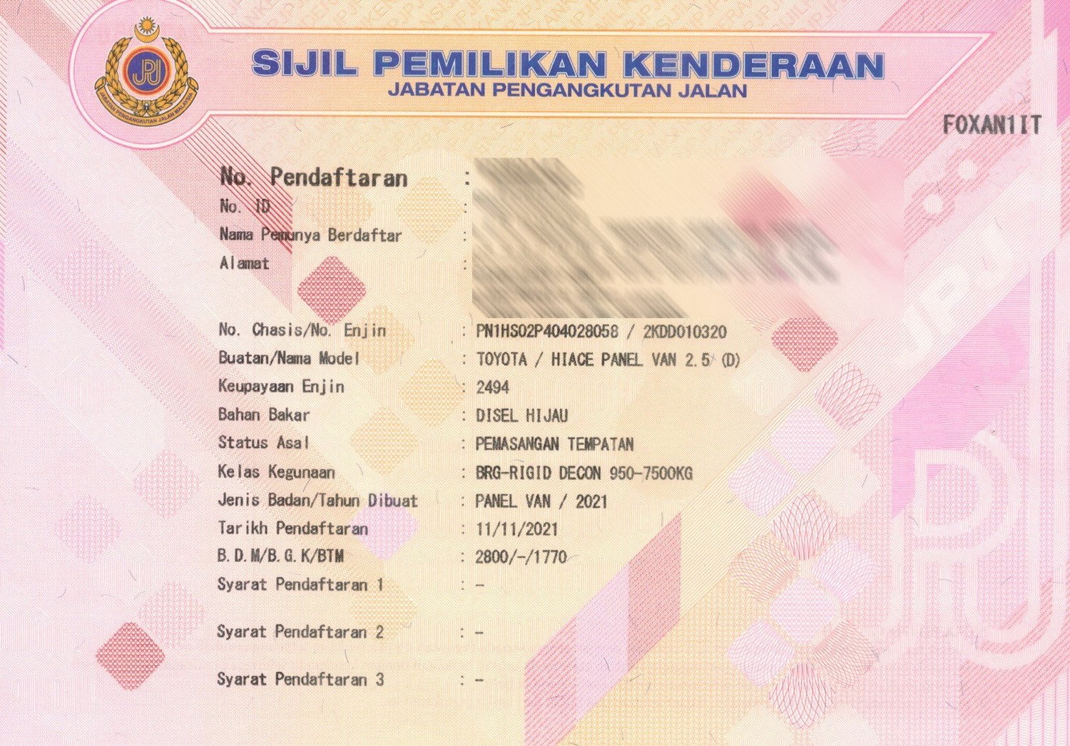 2. Selling Price for vehicle only, not included insurance, roadtax and handling etc.