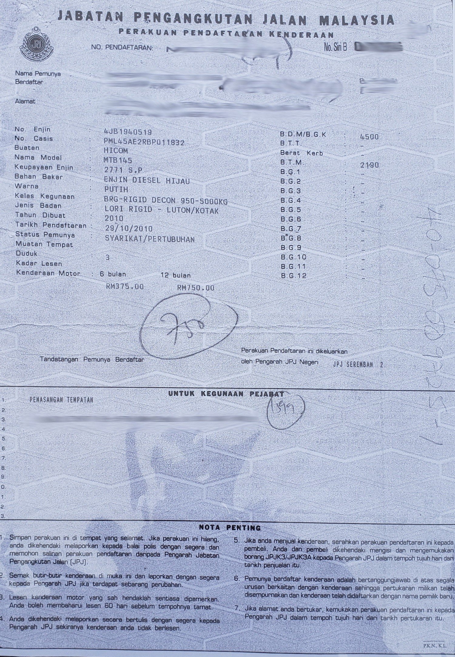 2. Selling Price for vehicle only, not included insurance, roadtax and handling etc.