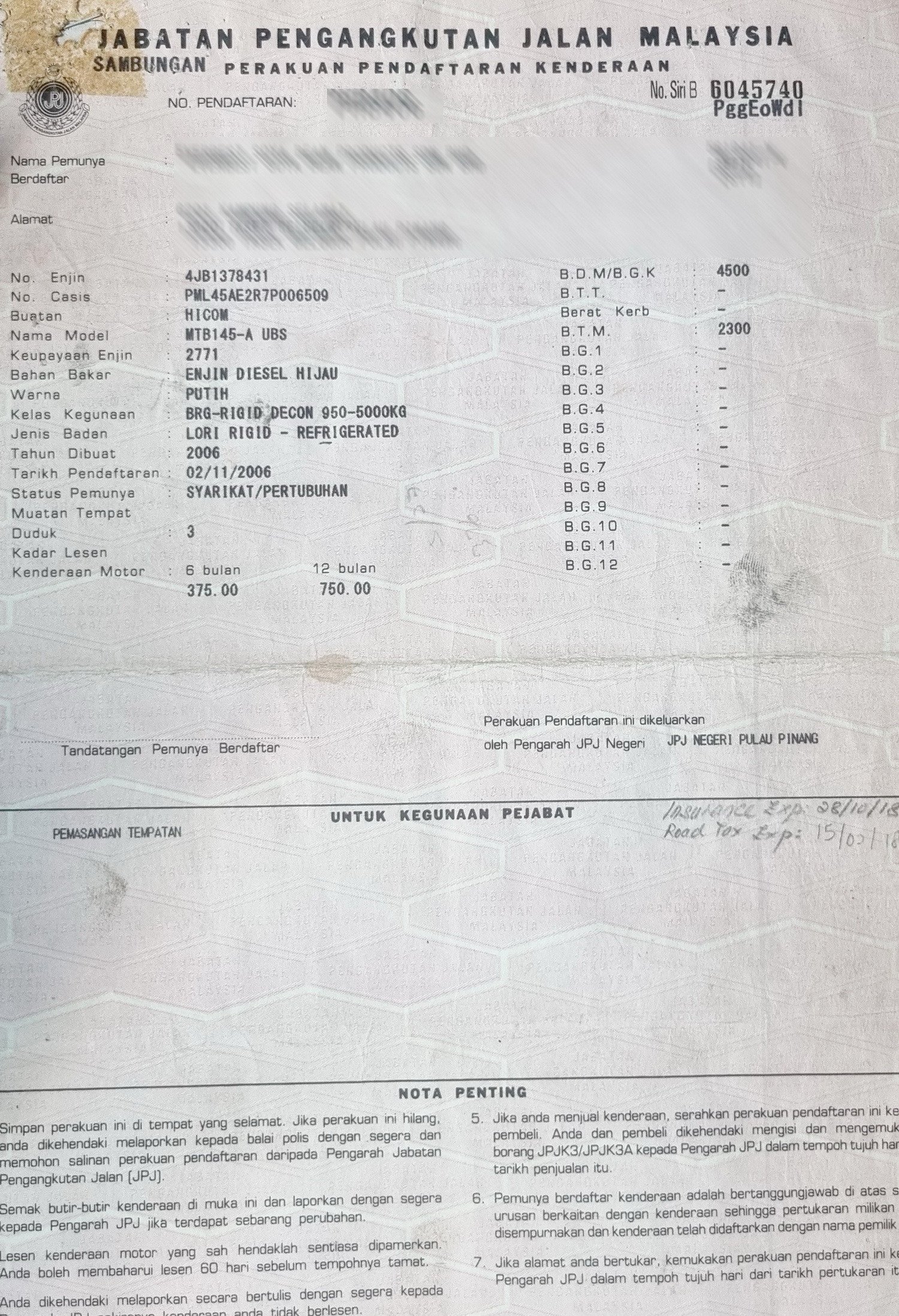 2. Selling Price for vehicle only, not included insurance, roadtax and handling etc.