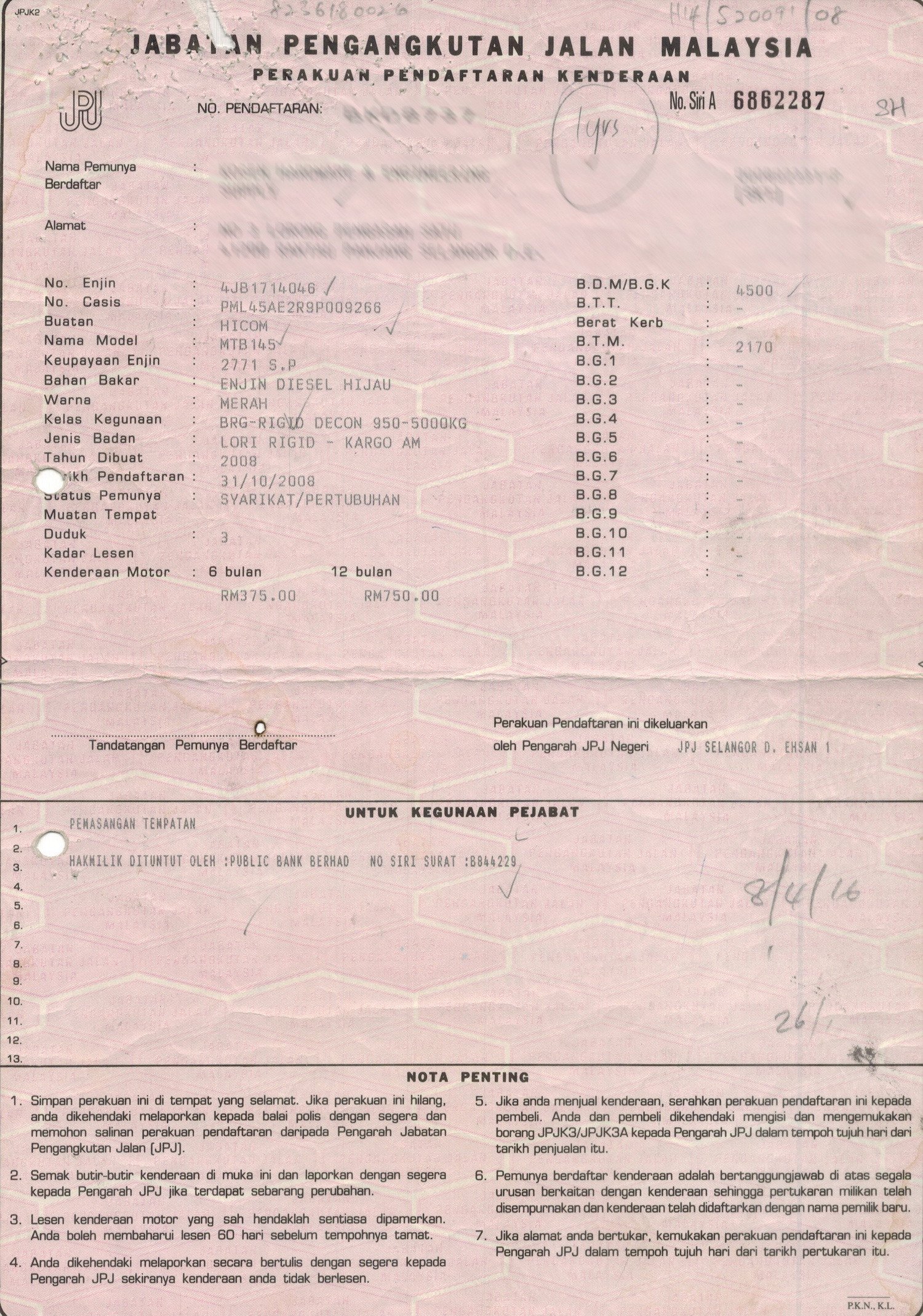 2. Selling Price for vehicle only, not included insurance, roadtax and handling etc.
