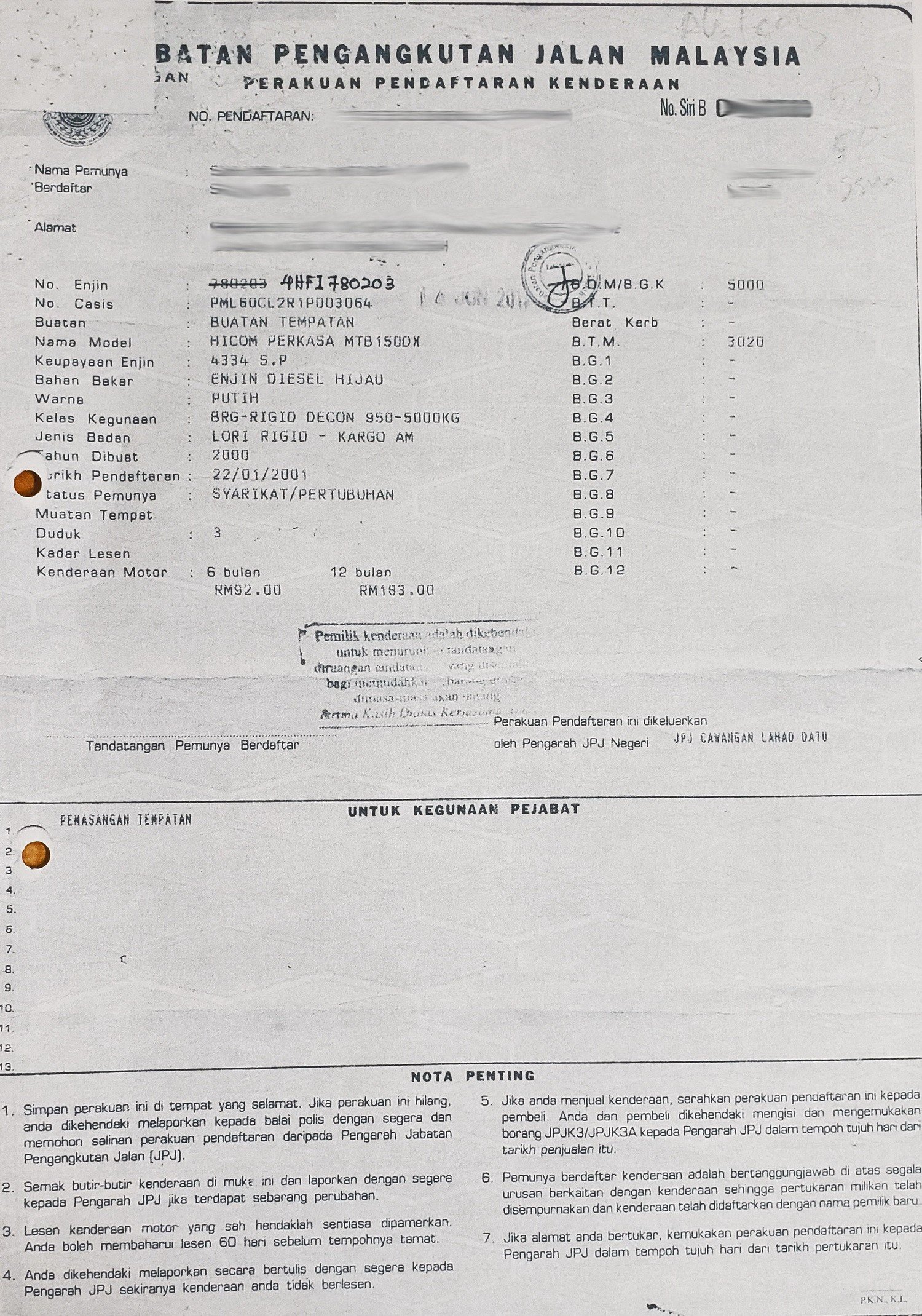 2. Selling Price for vehicle only, not included insurance, roadtax and handling etc.