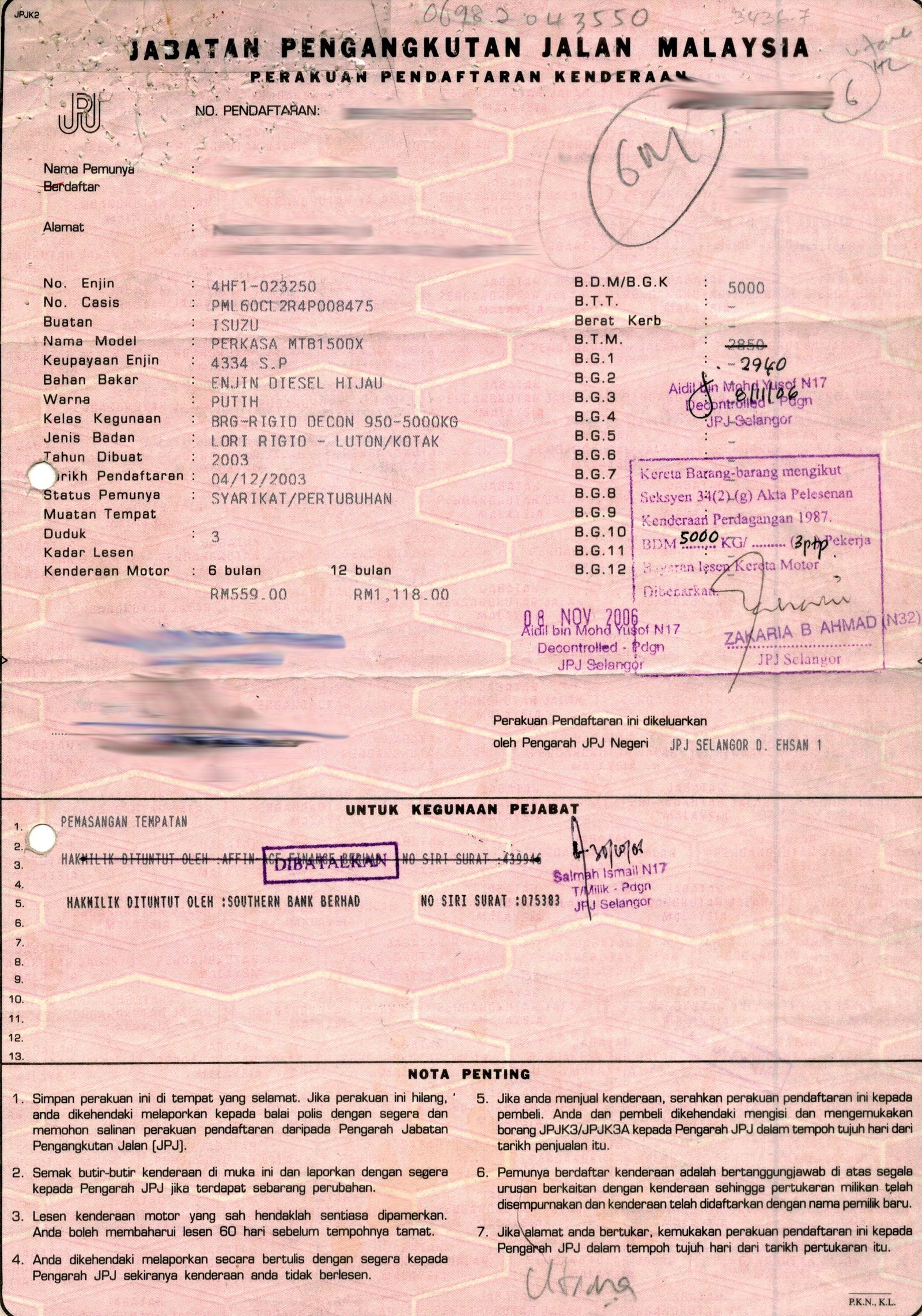 2. Selling Price for vehicle only, not included insurance, roadtax and handling etc.