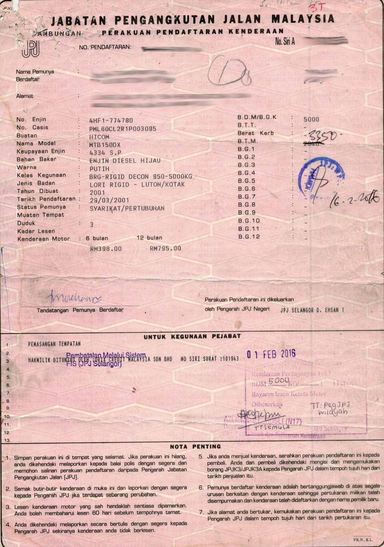 2. Selling Price for vehicle only, not included insurance, roadtax and handling etc.
