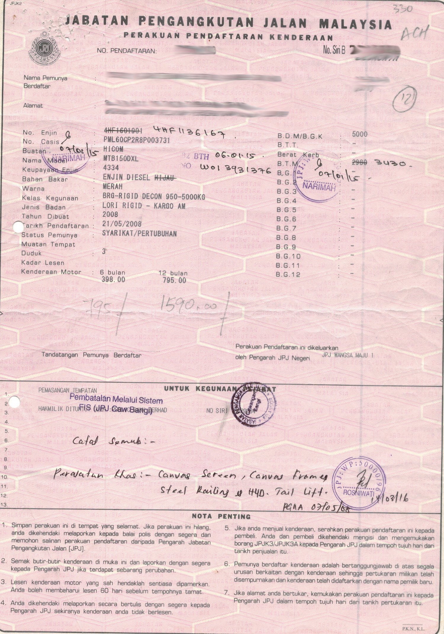2. Selling Price for vehicle only, not included insurance, roadtax and handling etc.