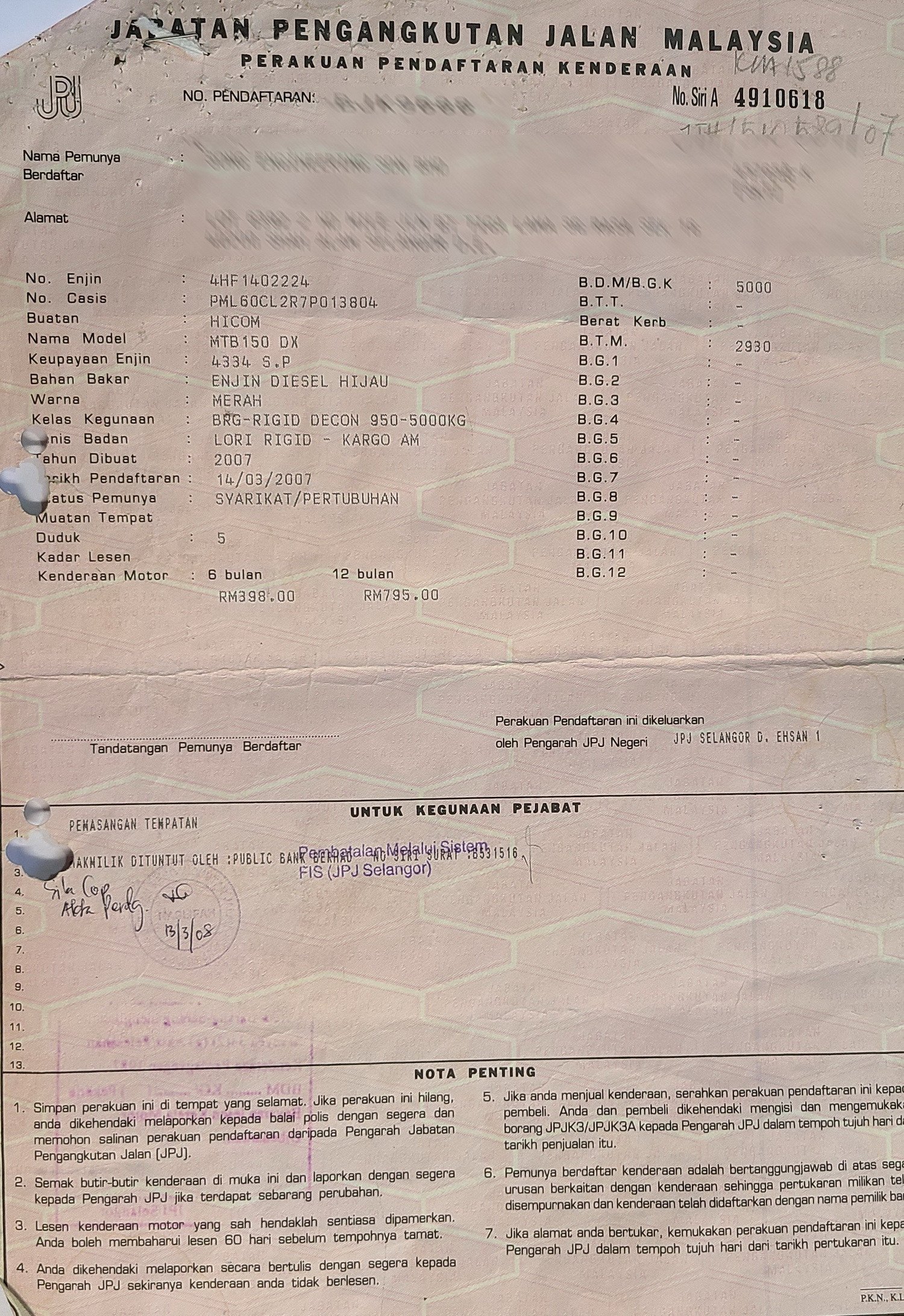 2. Selling Price for vehicle only, not included insurance, roadtax and handling etc.