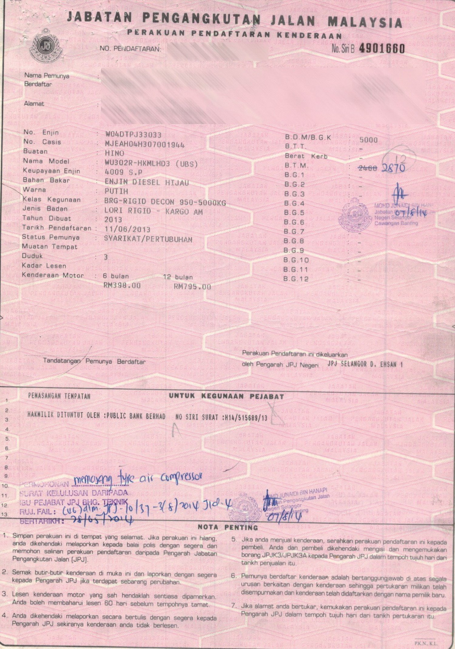 2. Selling Price for vehicle only, not included insurance, roadtax and handling etc.
