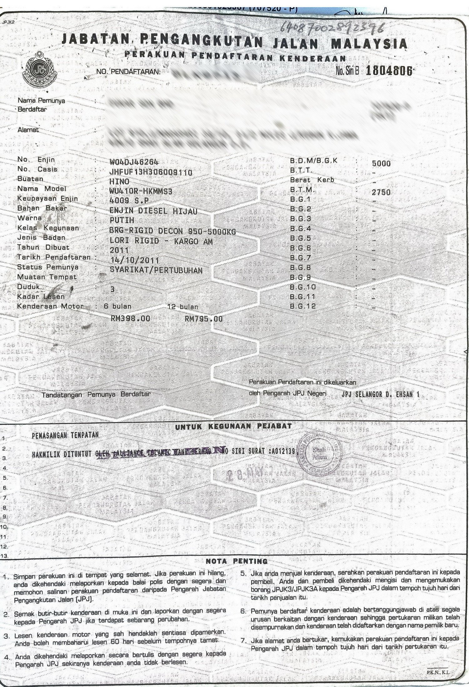 2. Selling Price for vehicle only, not included insurance, roadtax and handling etc.