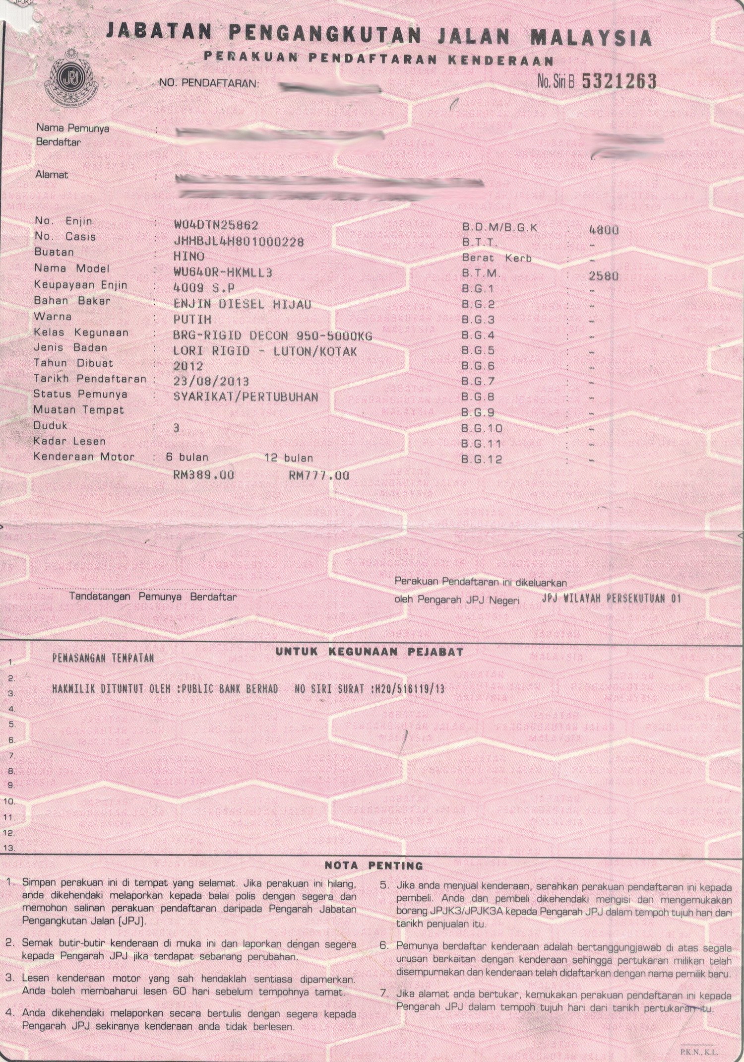 2. Selling Price for vehicle only, not included insurance, roadtax and handling etc.