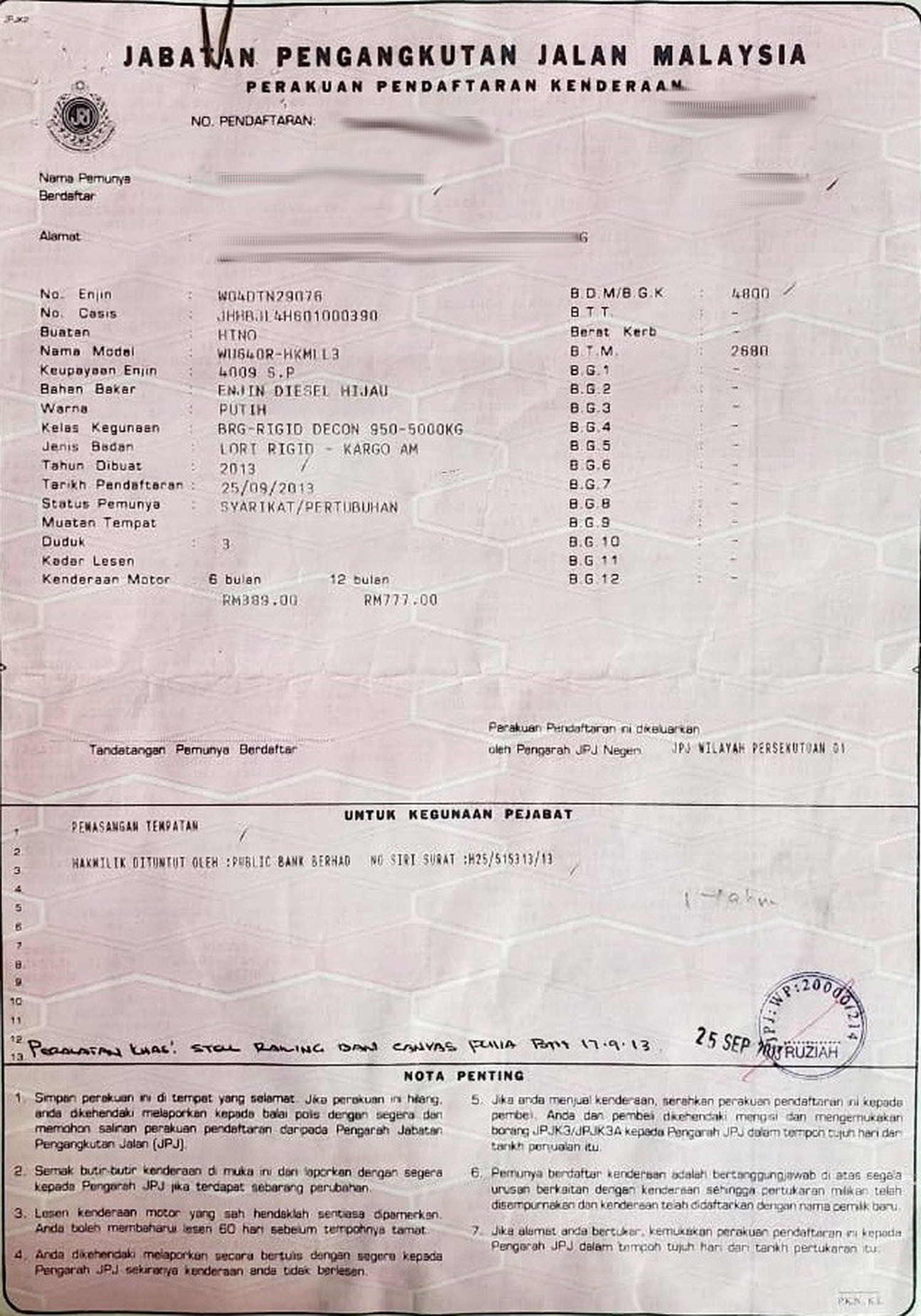 2. Selling Price for vehicle only, not included insurance, roadtax and handling etc.