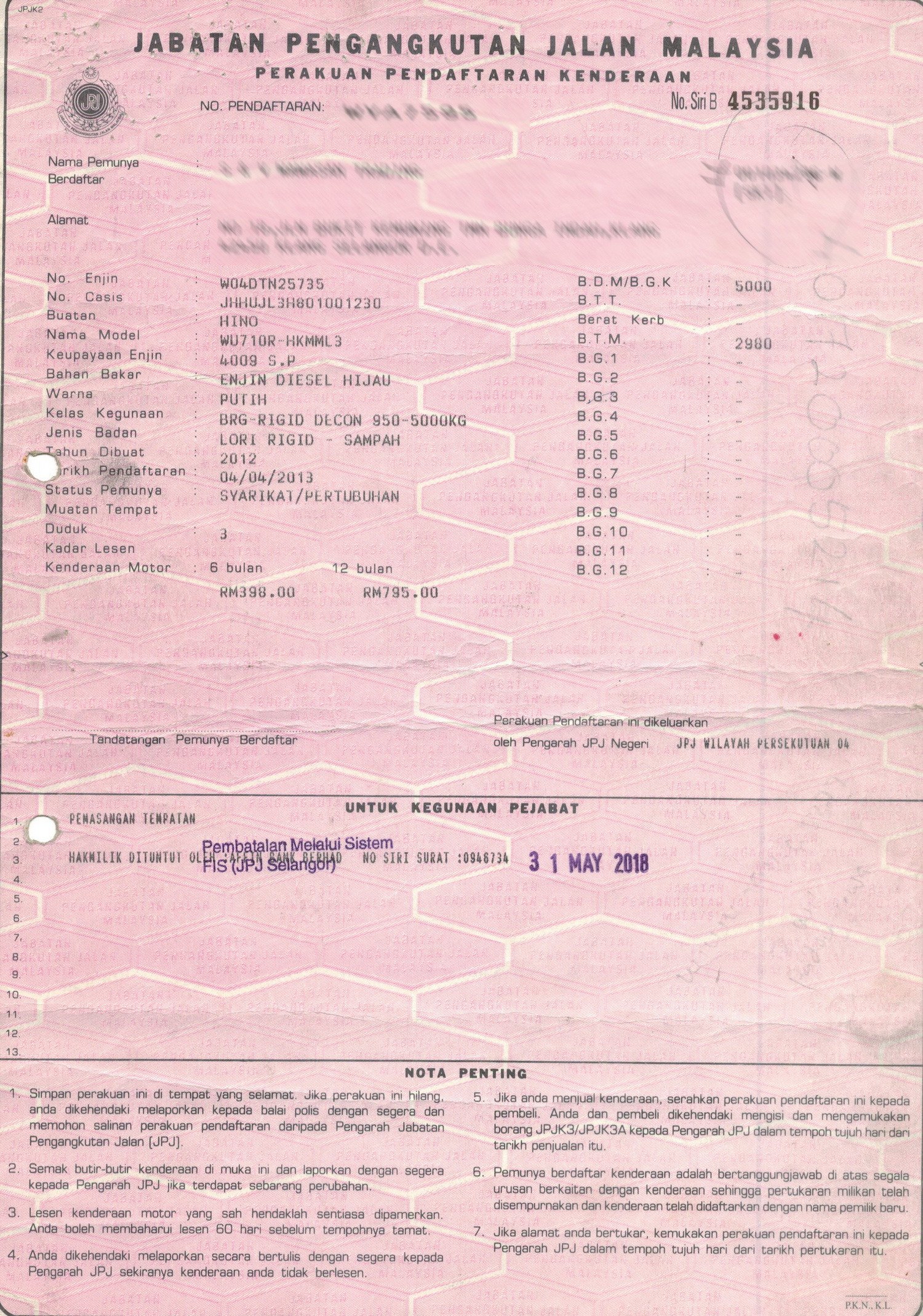 2. Selling Price for vehicle only, not included insurance, roadtax and handling etc.