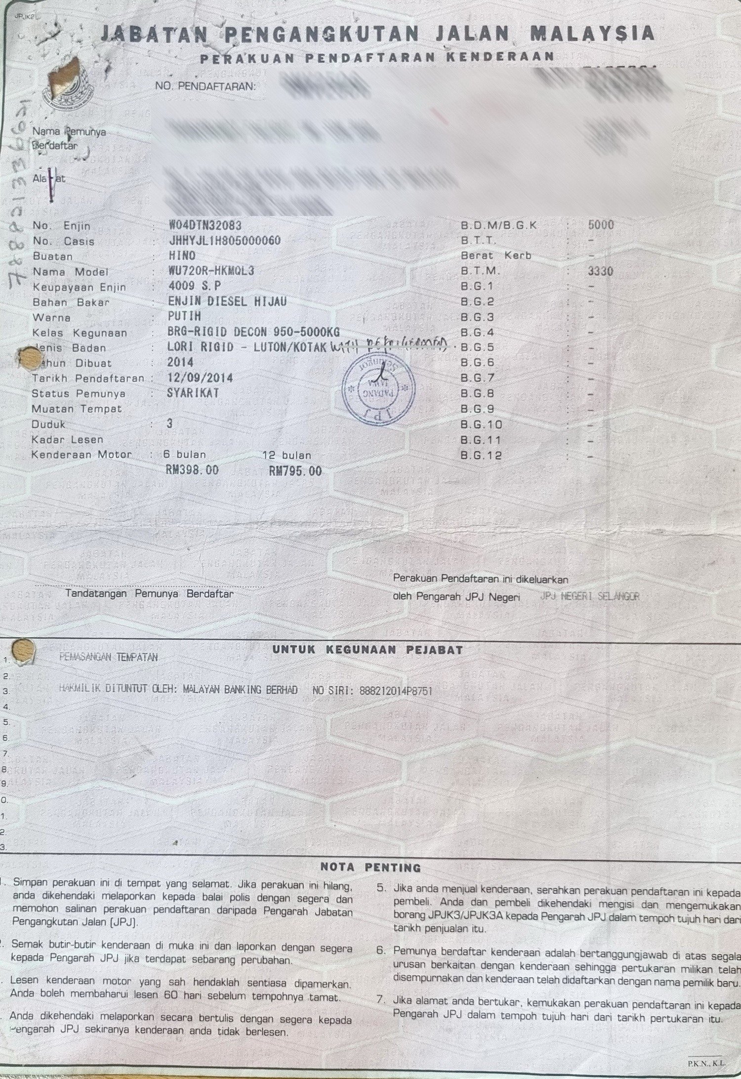 2. Selling Price for vehicle only, not included insurance, roadtax and handling etc.