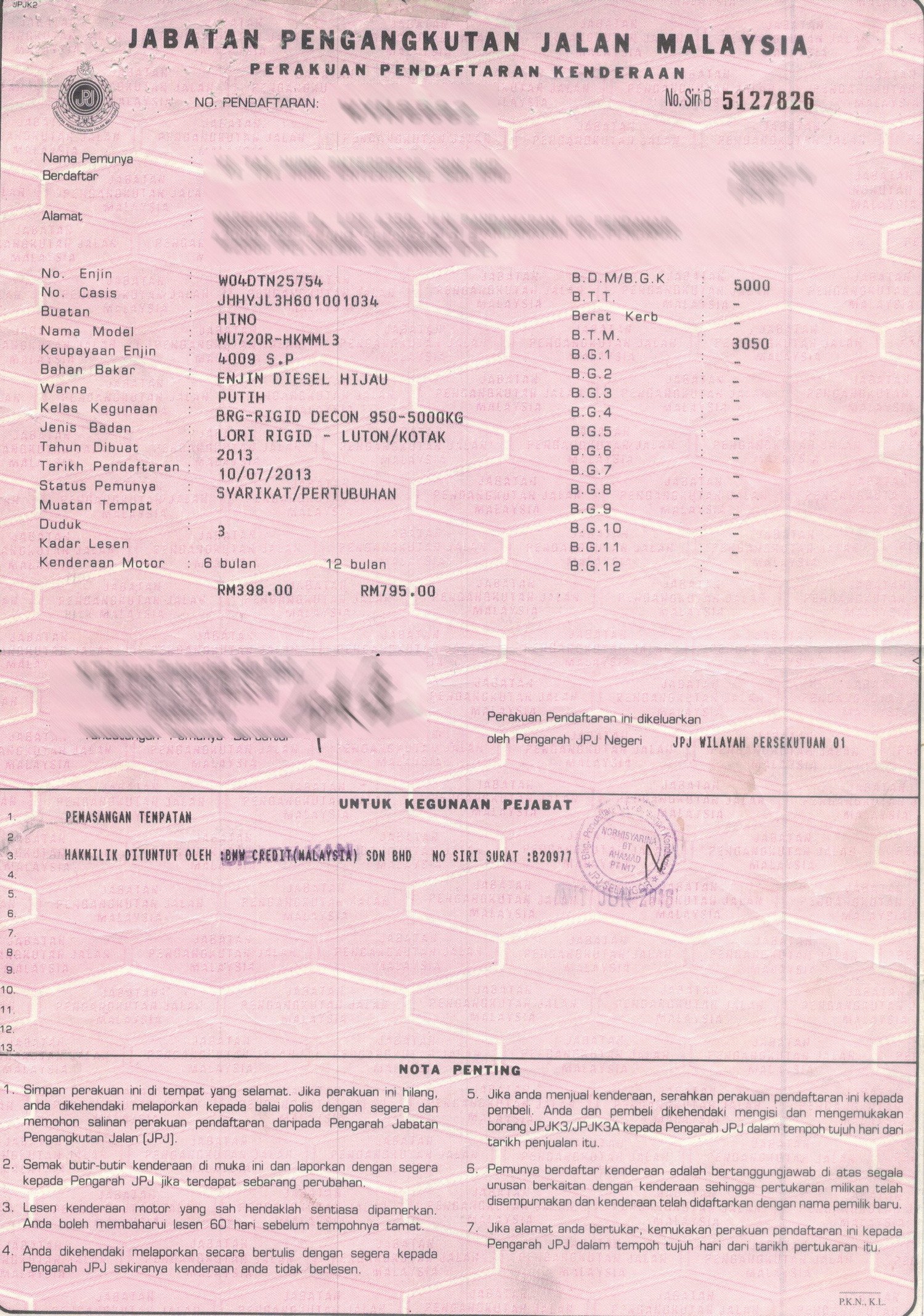 2. Selling Price for vehicle only, not included insurance, roadtax and handling etc.