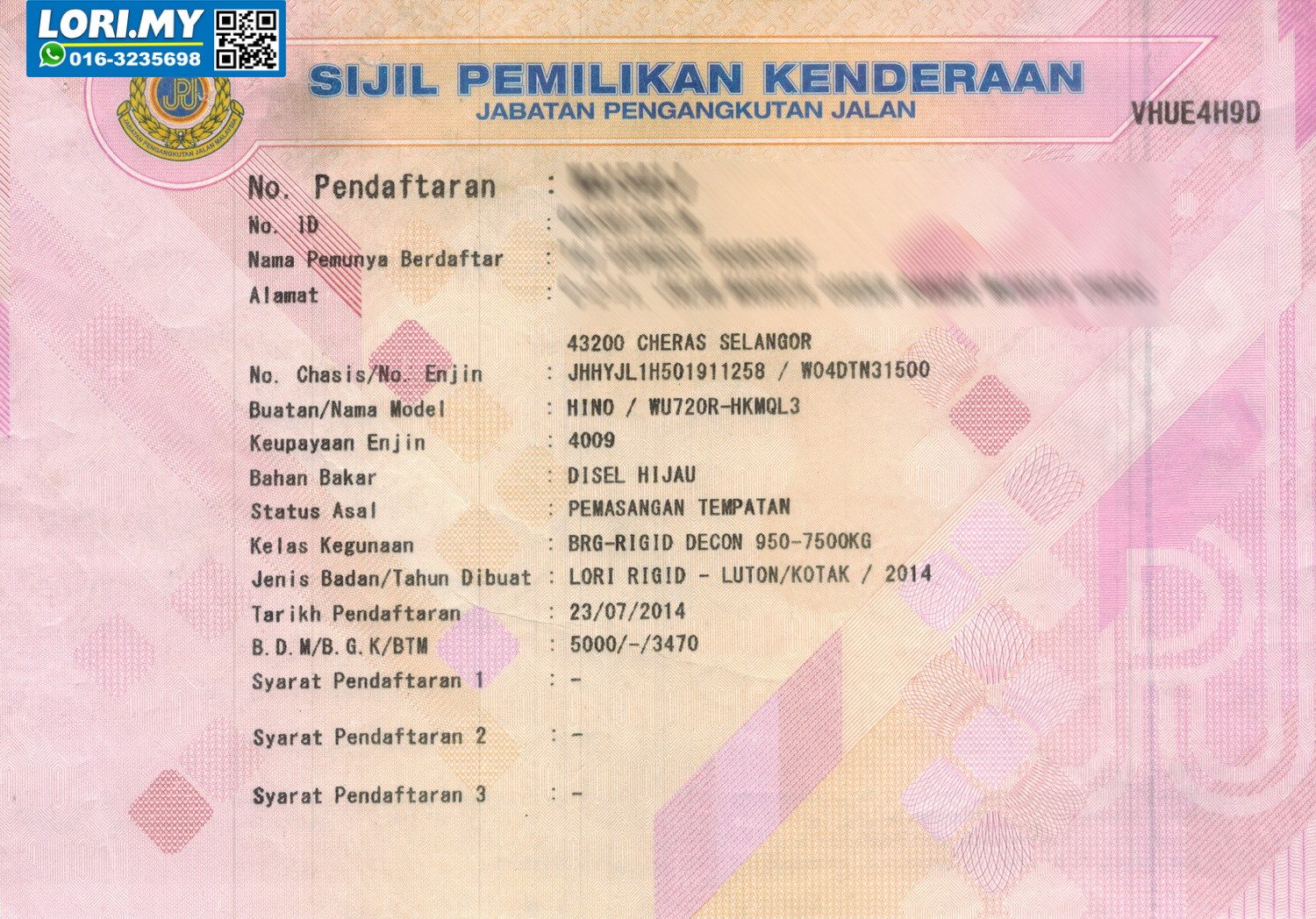 2. Selling Price for vehicle only, not included insurance, roadtax and handling etc.